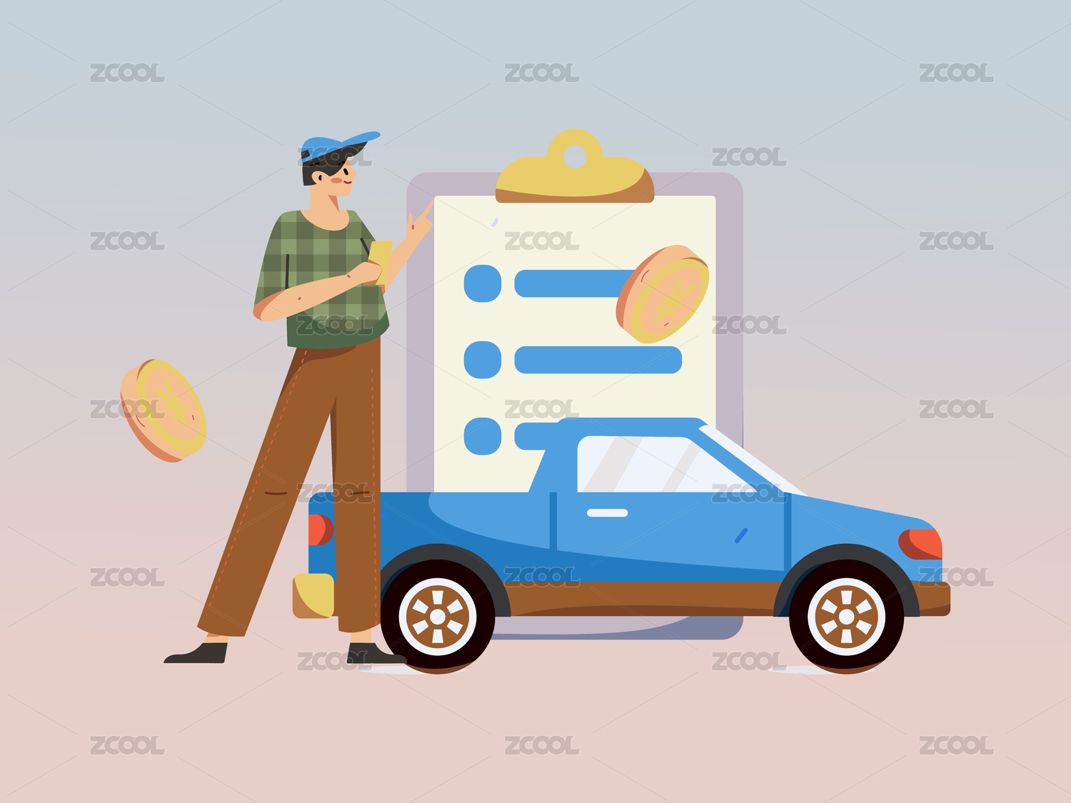 卡通汽车保险购车贷款买车促销活动矢量背景插画