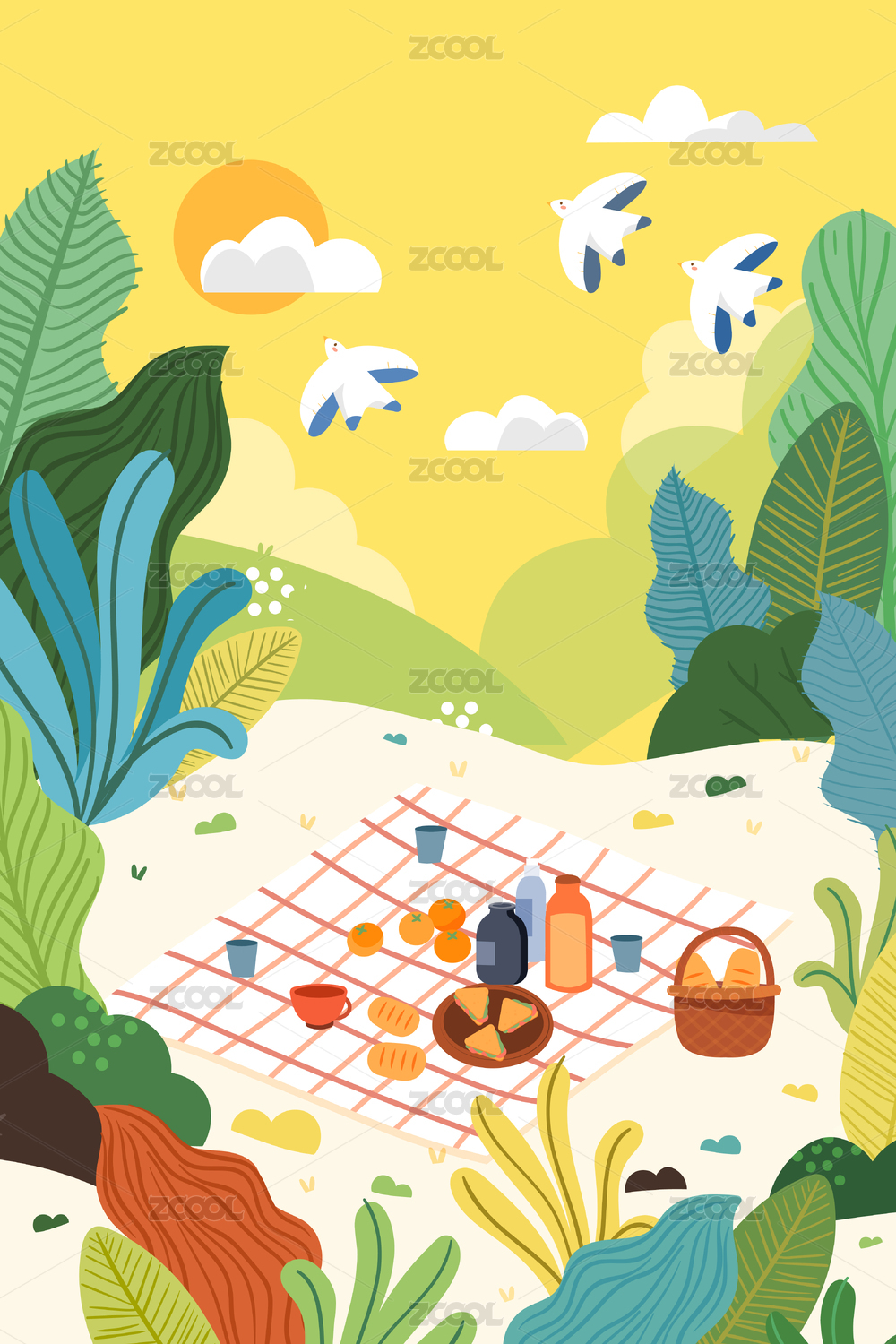 感恩母亲节母女拥抱插画一家人春季出游海报