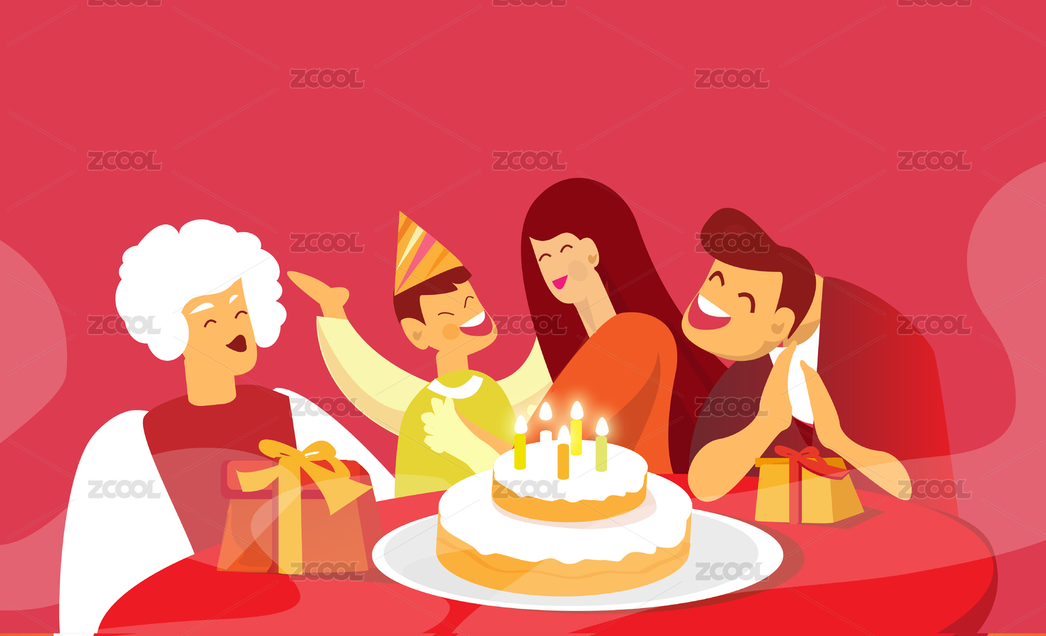 一家人庆祝生日插画