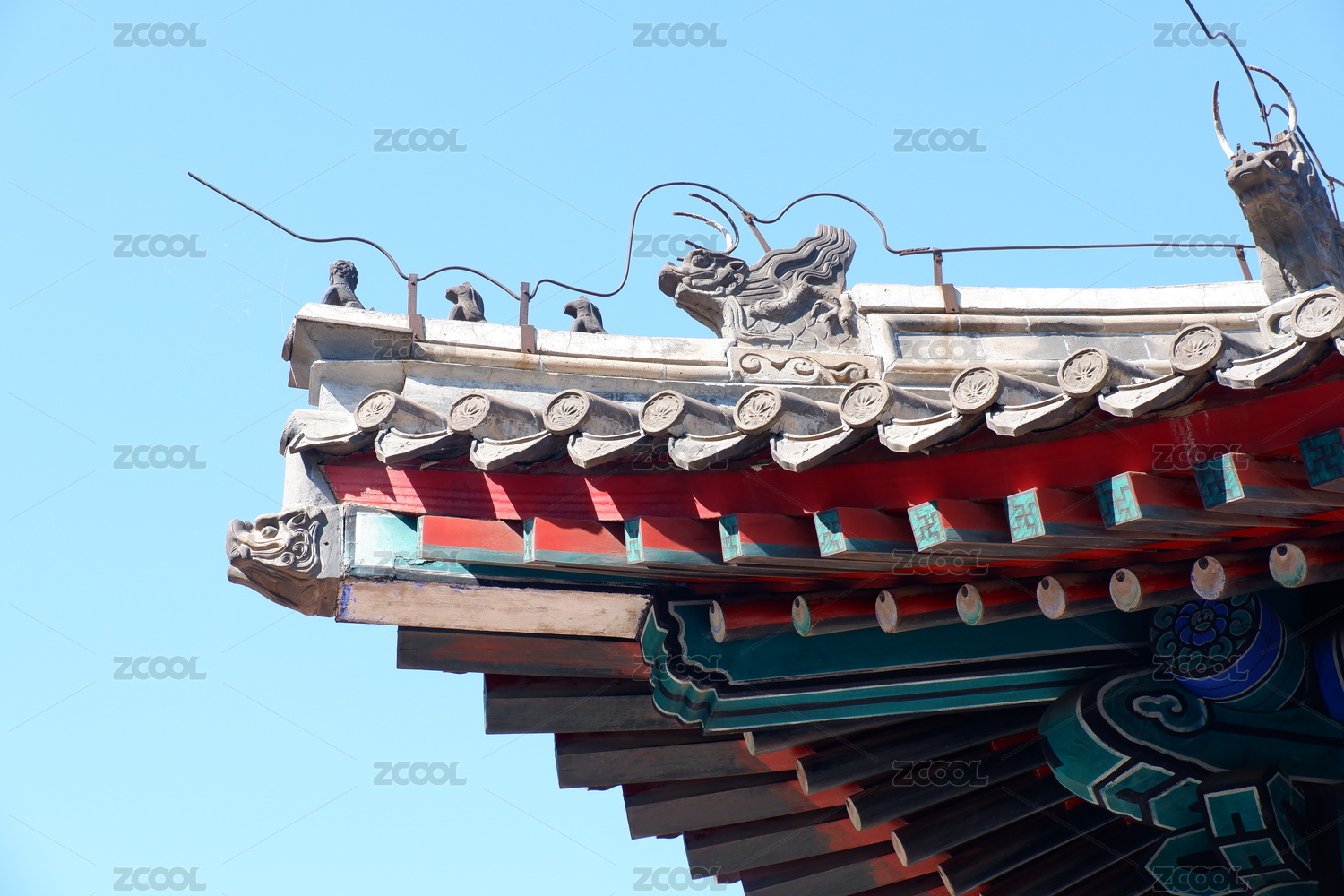 中国山东省寿光市宁国寺宫殿建筑飞檐翘角