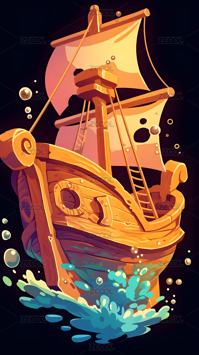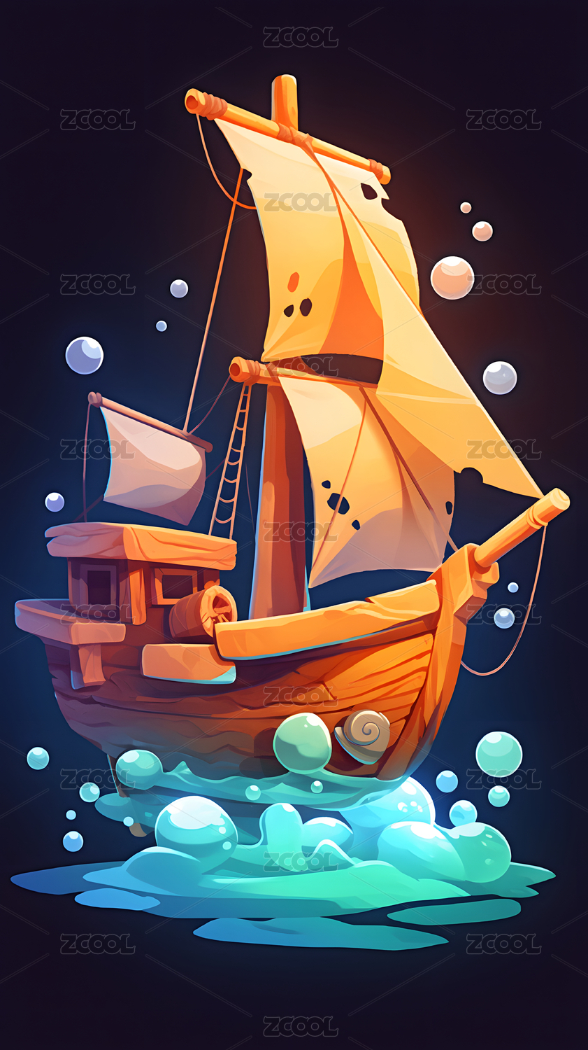 Q版,卡通,船,海盗船,航行,海面,高清,帆船