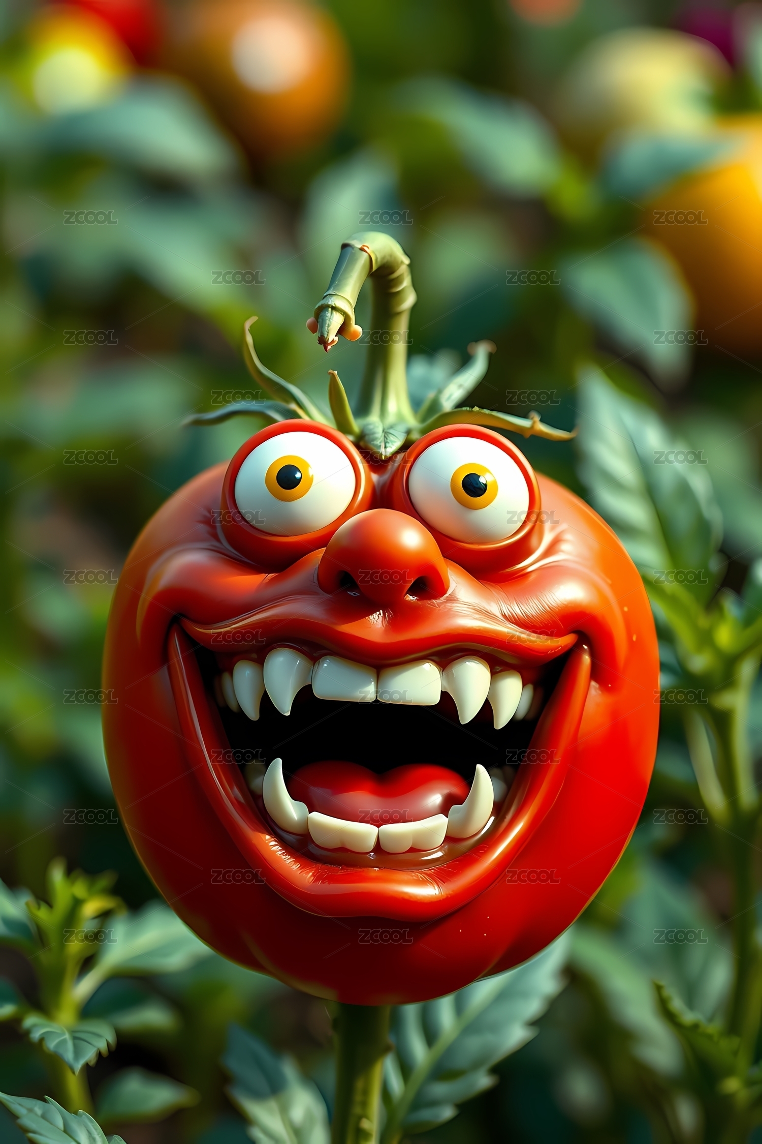 创意,笑脸,大眼睛,大嘴巴,牙齿,手,脚,西红柿,番茄
