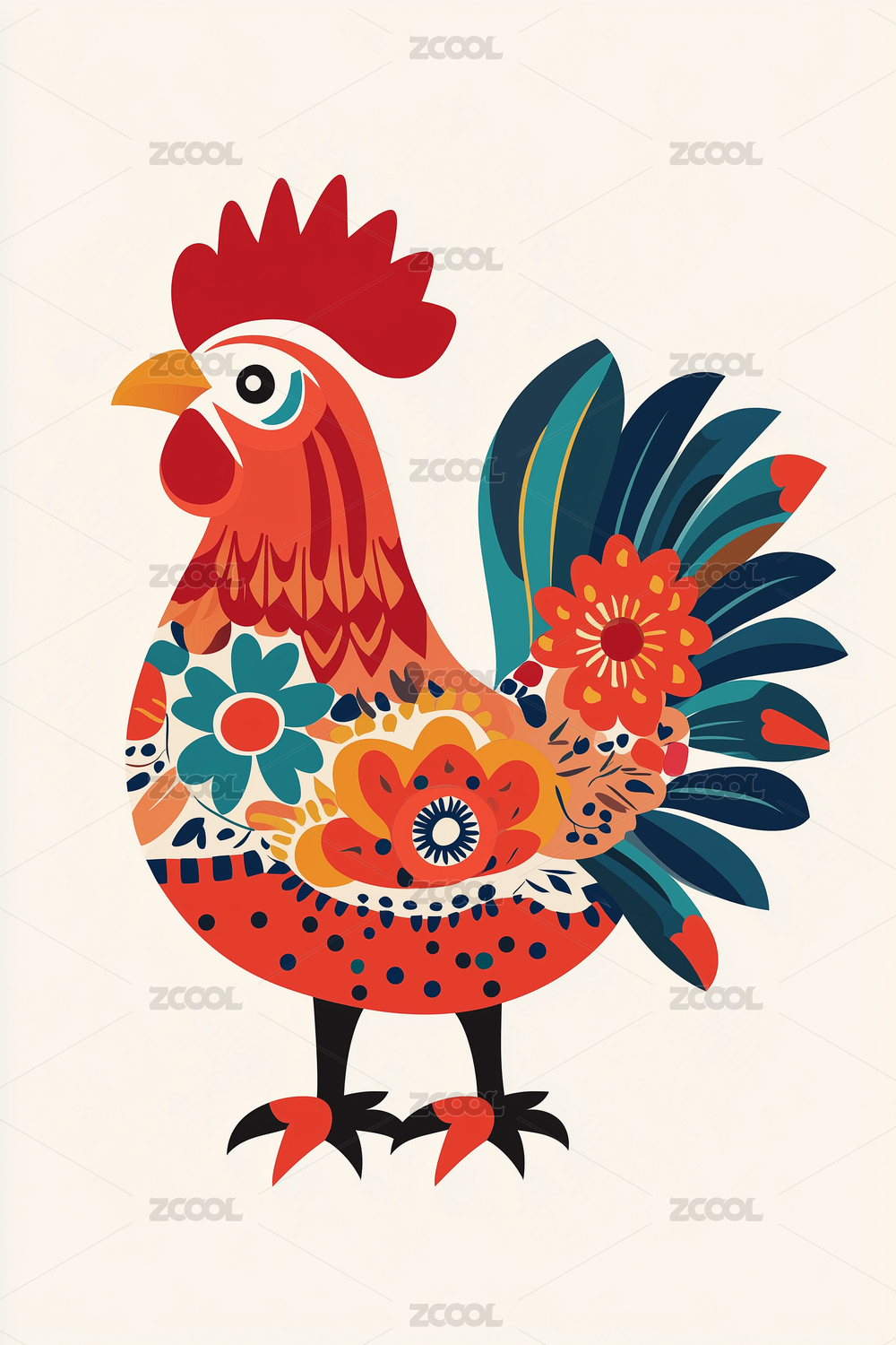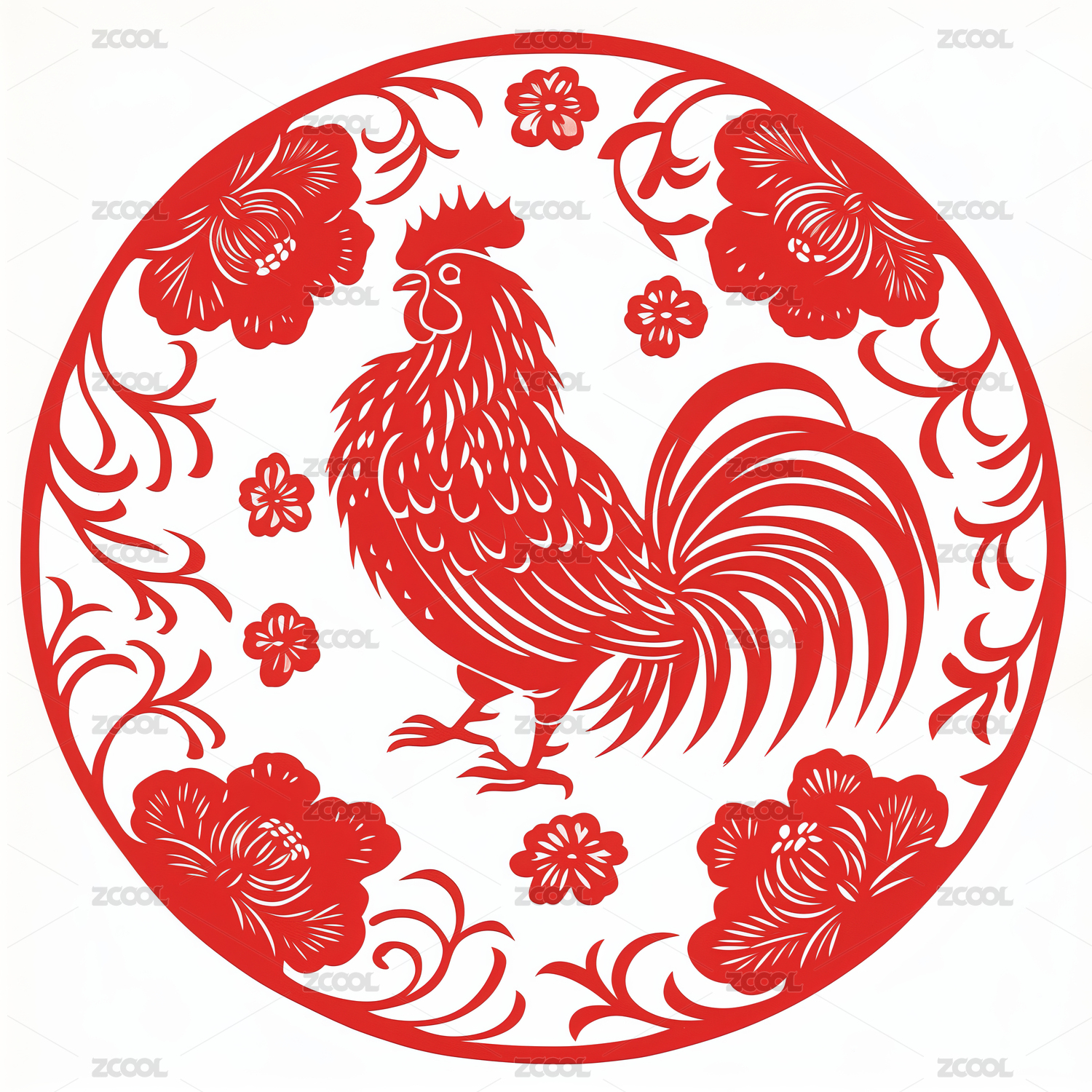 鸡年剪纸窗花年画圆形中国风春节印刷打印
