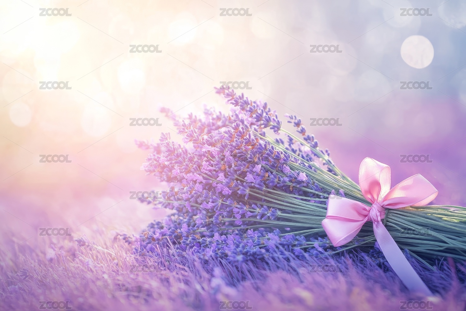 淡紫色薰衣草花束柔光特写