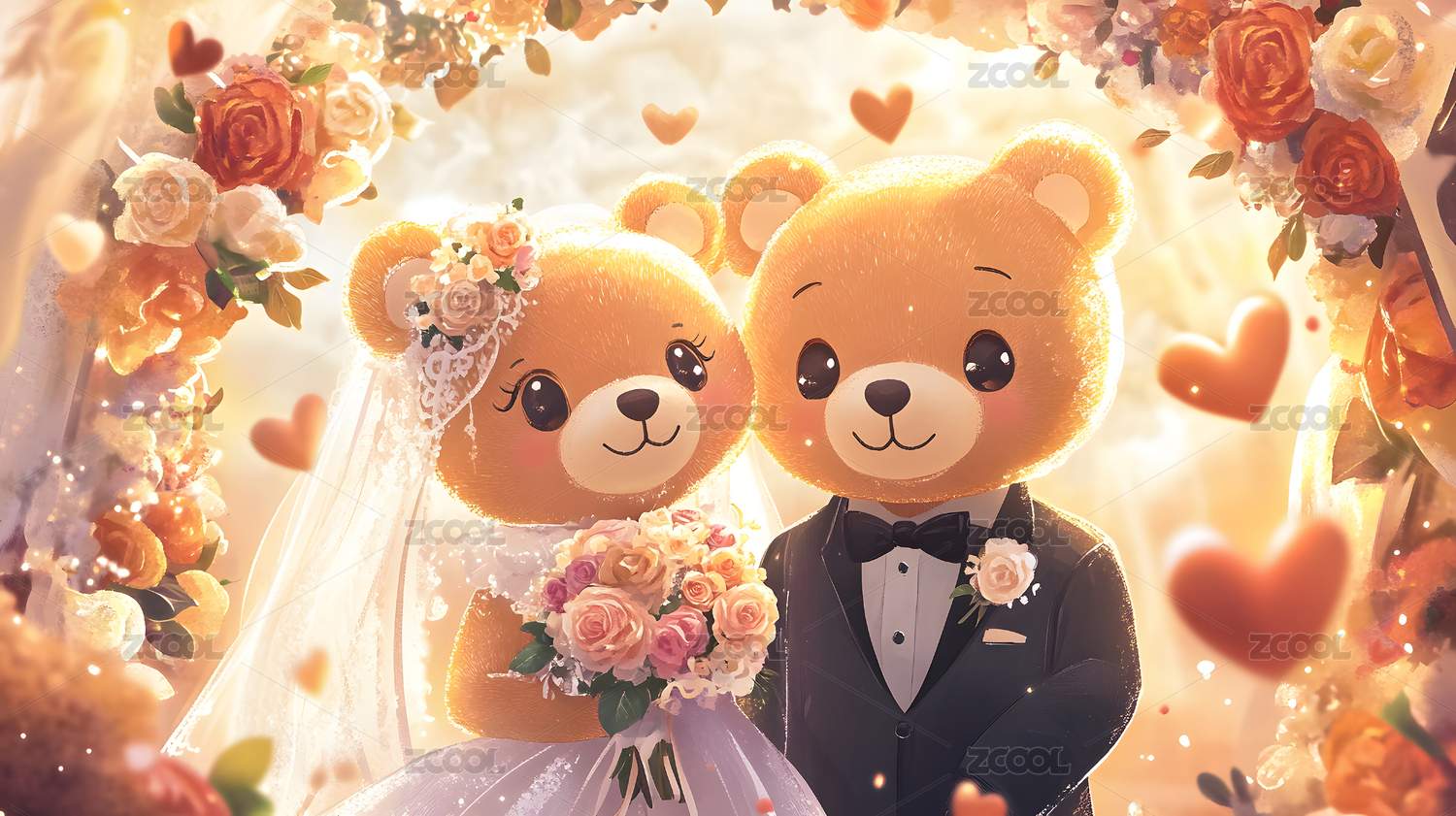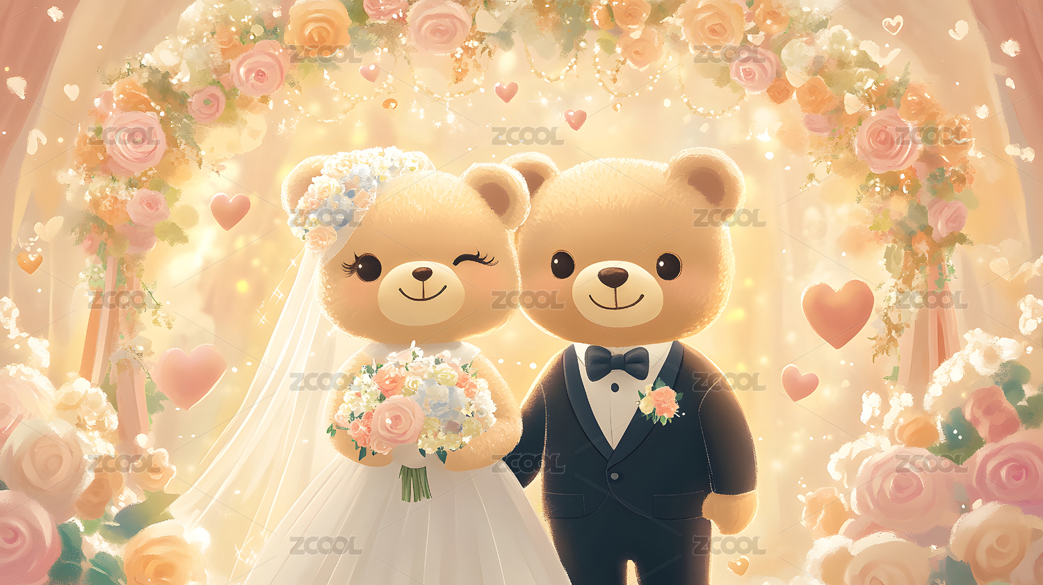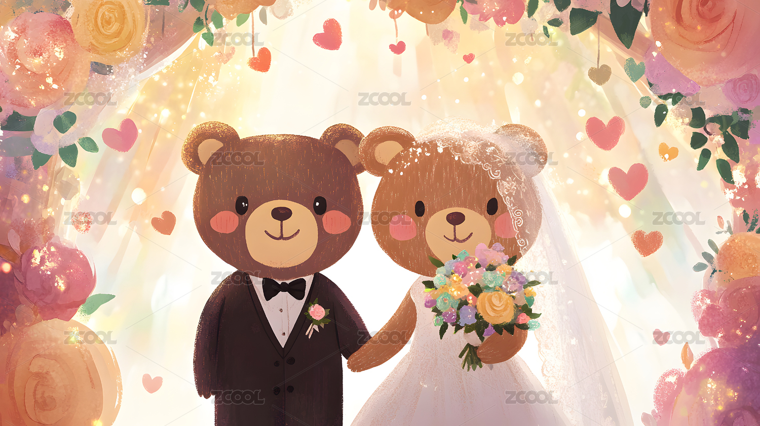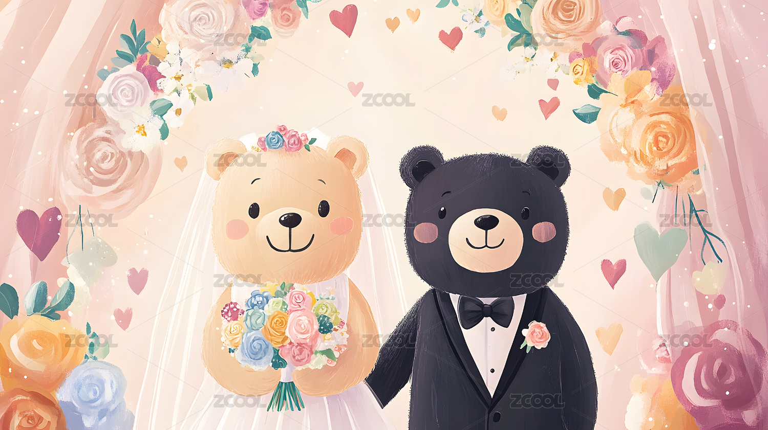 卡通动物结婚典礼插图可爱