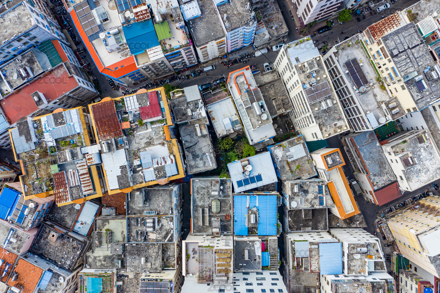 航拍海南三亚港门村都市村庄城中村自建房屋