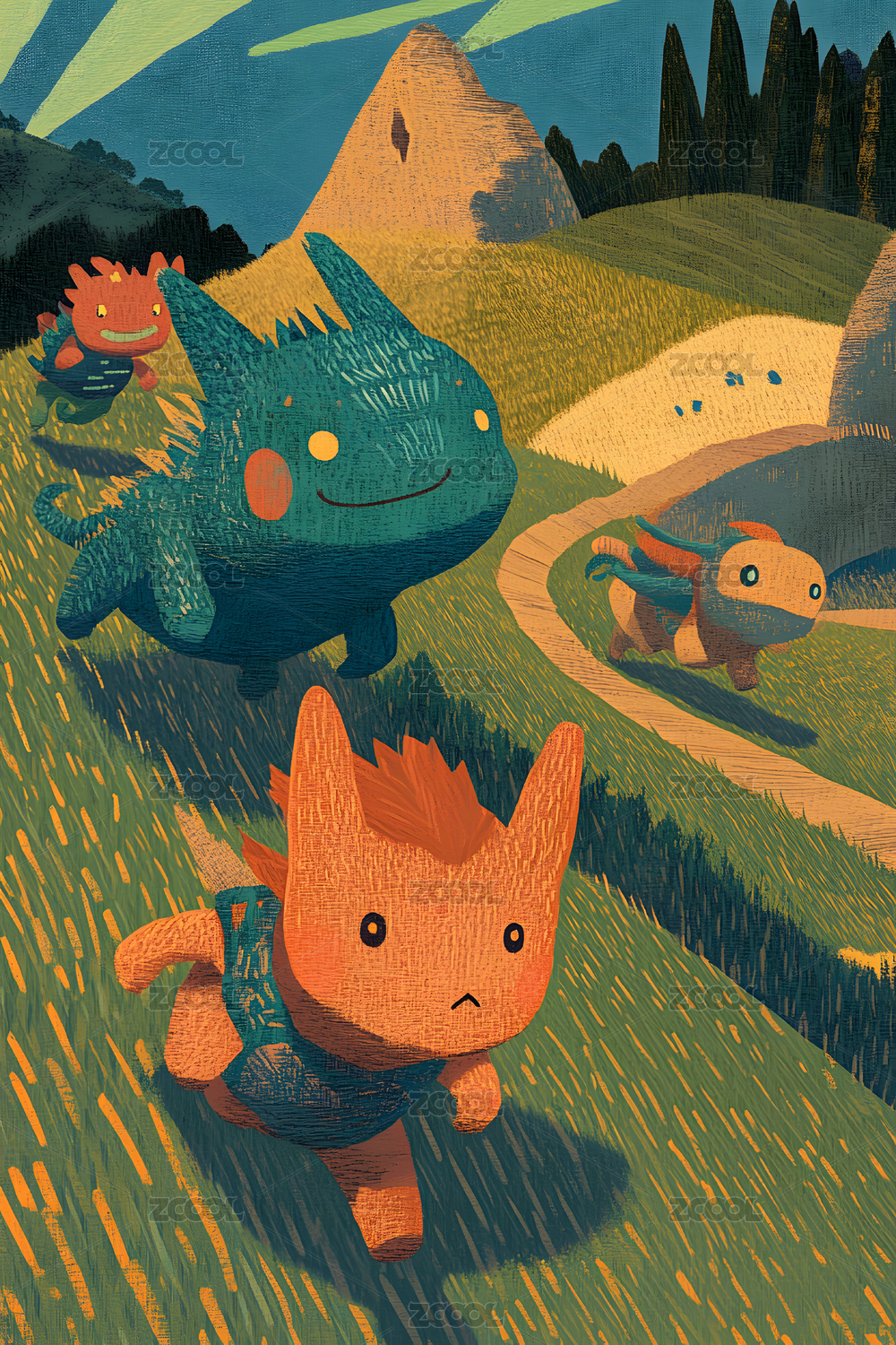 彩色,温暖,创意,插画,橙色,肌理,短线条,线条,儿童