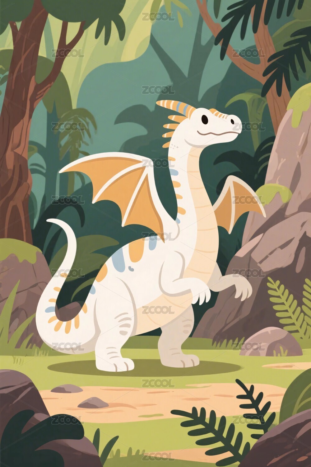 科幻卡通一只昂首爬行威猛可爱的恐龙插画