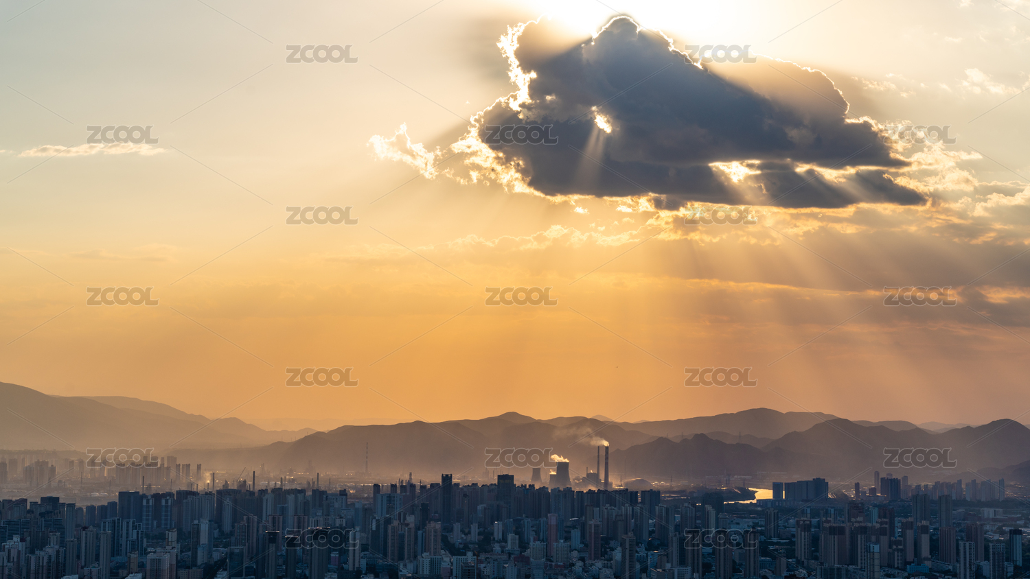 中国甘肃兰州市城市傍晚日落丁达尔光线风景