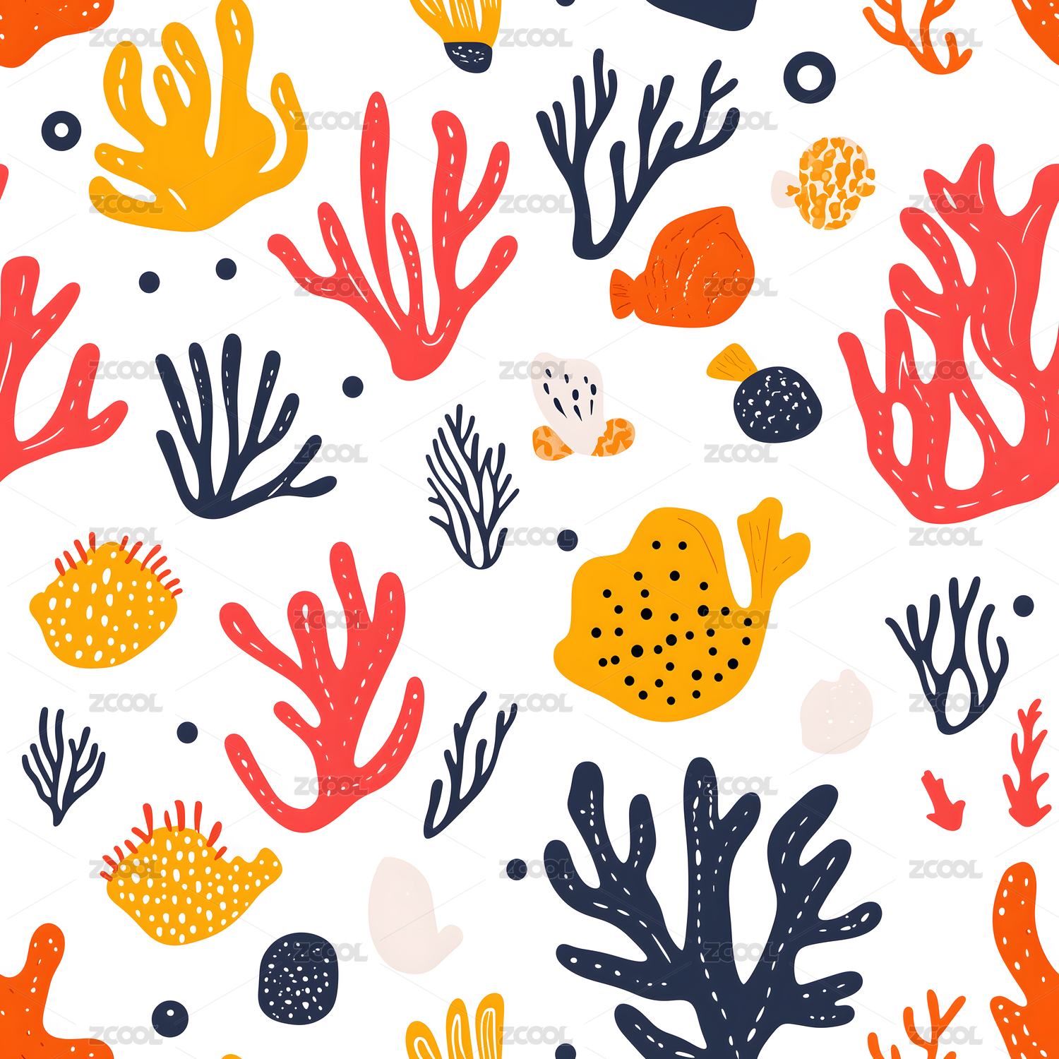 海洋,小动物,鱼类,海豚,大海,卡通,手绘,生物,珊瑚,蟹