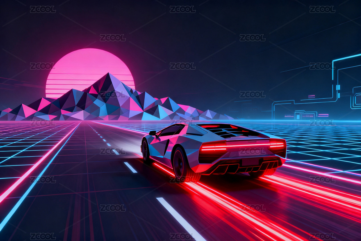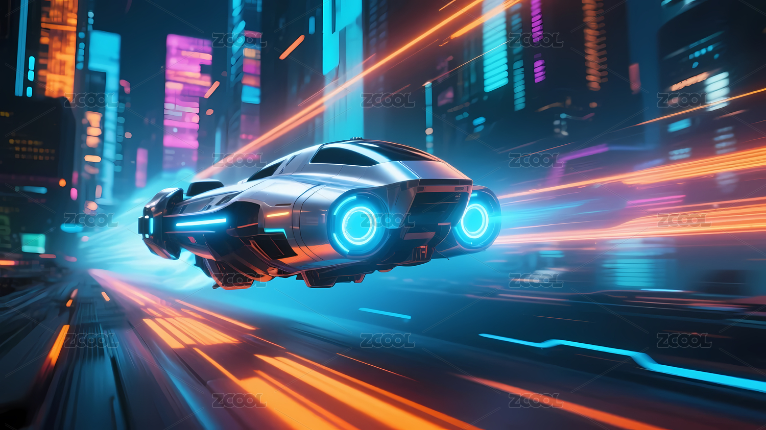 赛博朋克科技未来汽车抽象霓虹发光概念插图