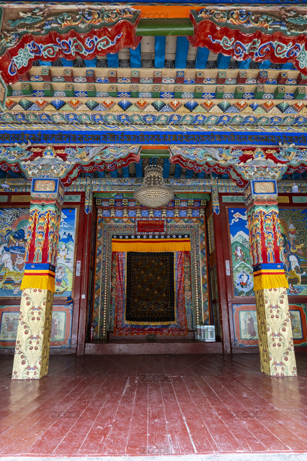 四川省,阿坝州,红原县,康玛尔寺,寺院,寺庙,藏传佛教,大经堂,入口,柱子