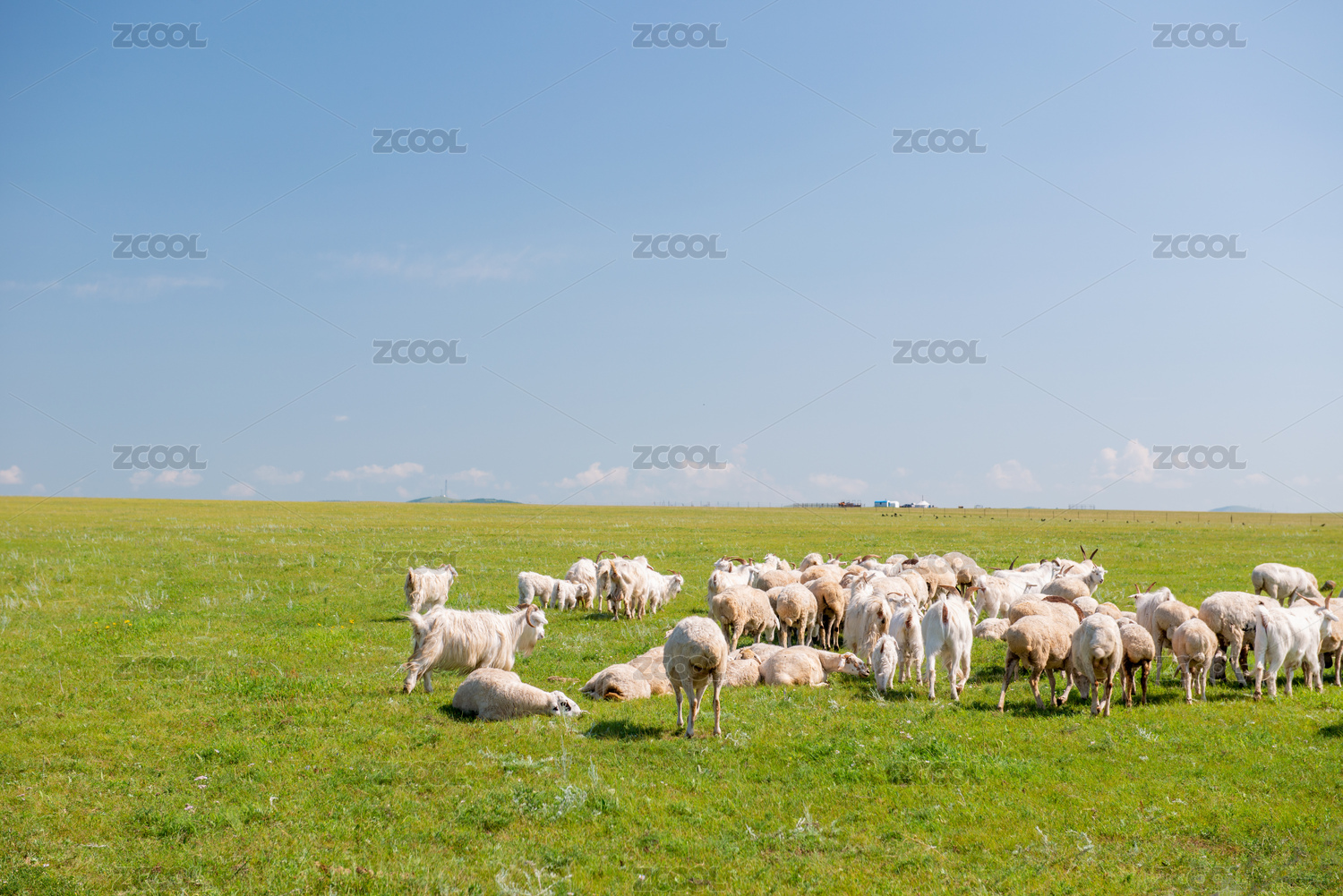 内蒙古有广阔草原上羊群在悠闲吃草的景象