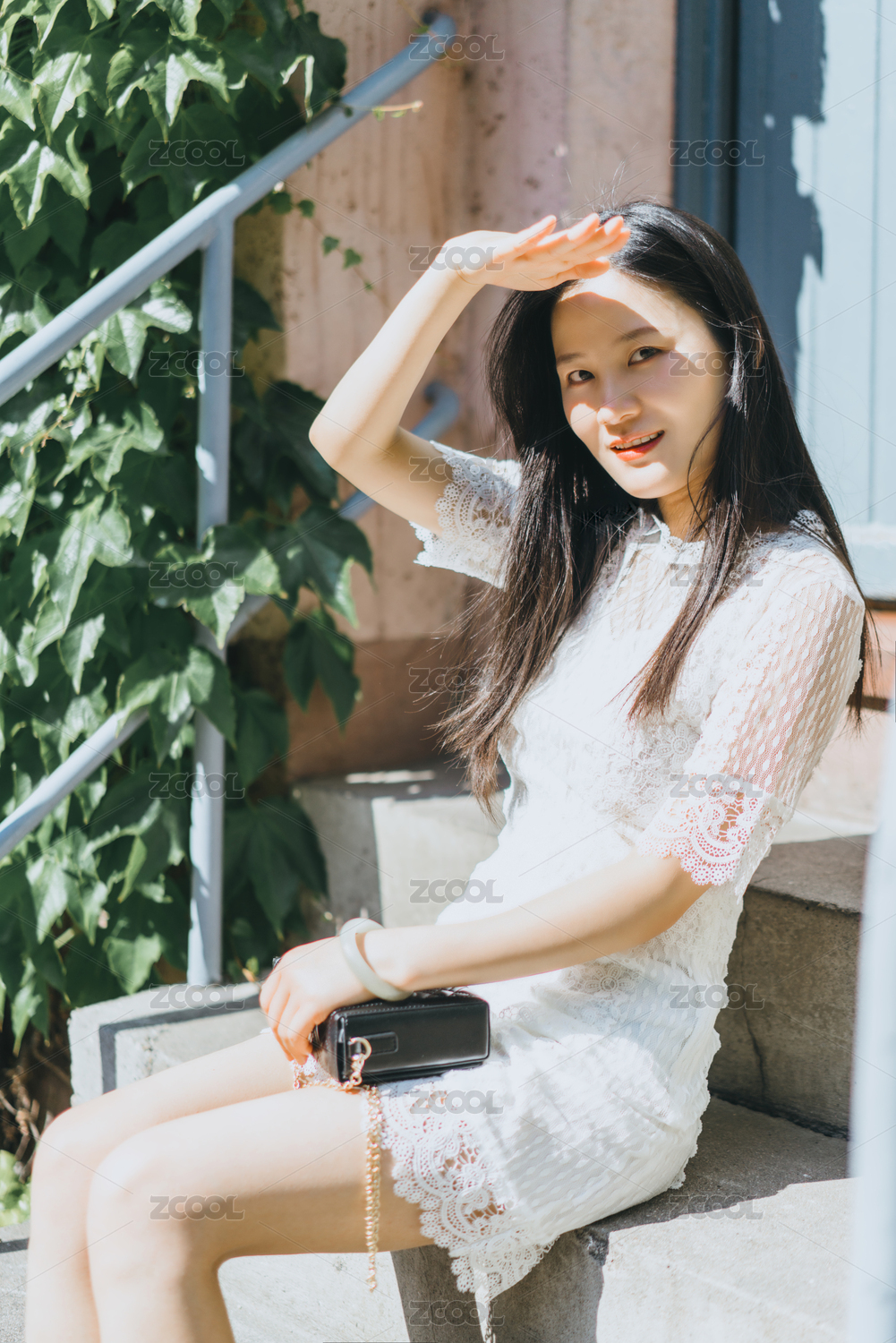 欧洲风格唯美气质白色蕾丝裙女生人像