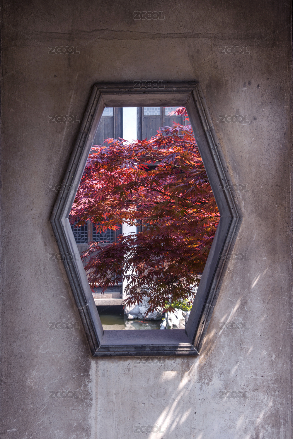 南京总统府景区花窗边的爬墙虎