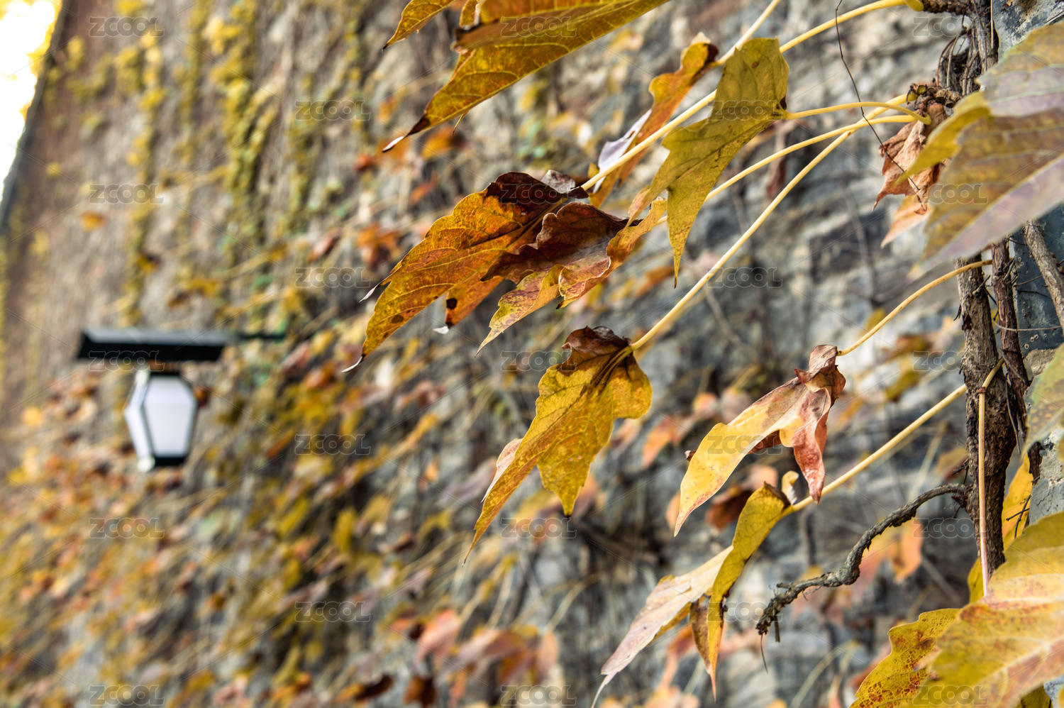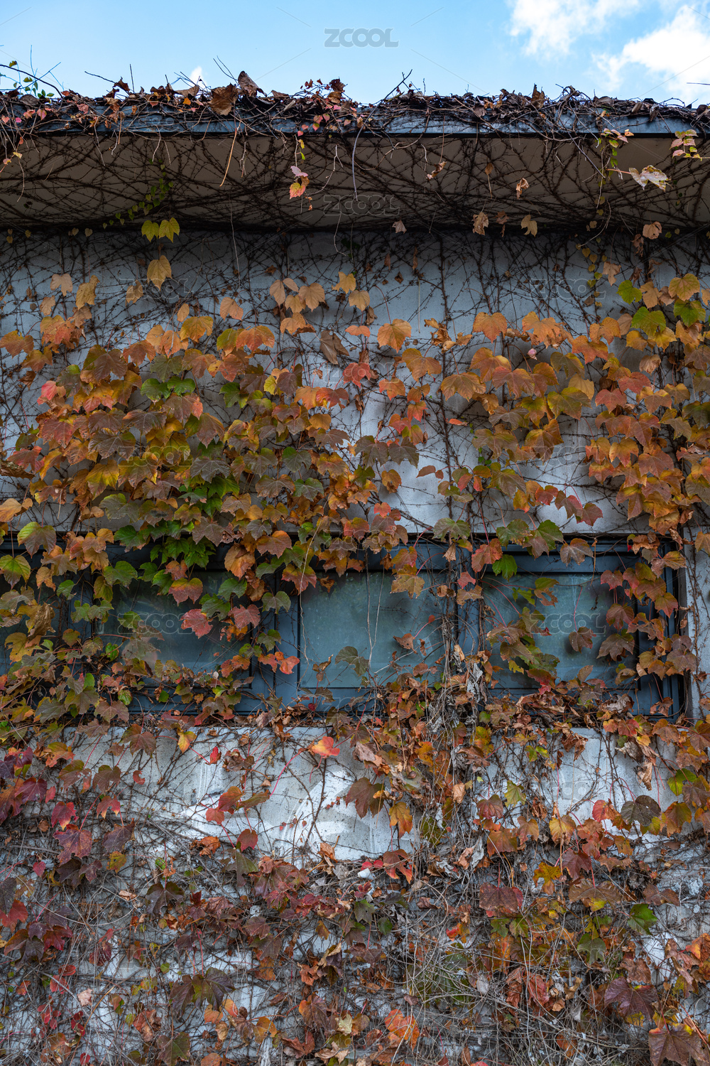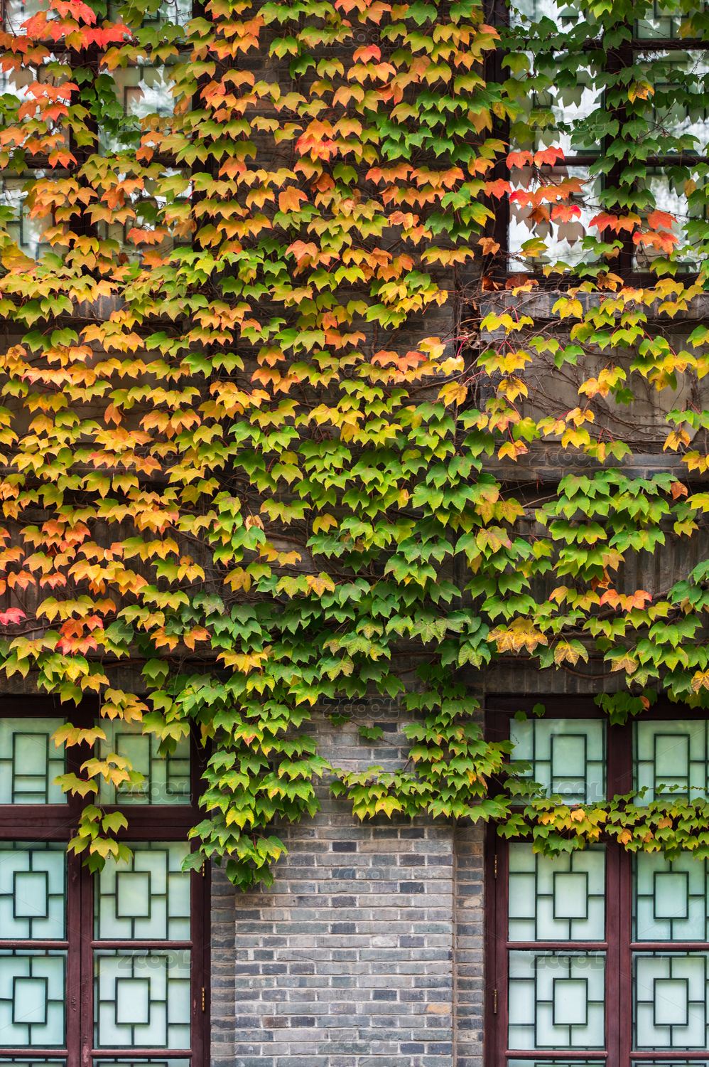 秋天窗户旁的爬山虎