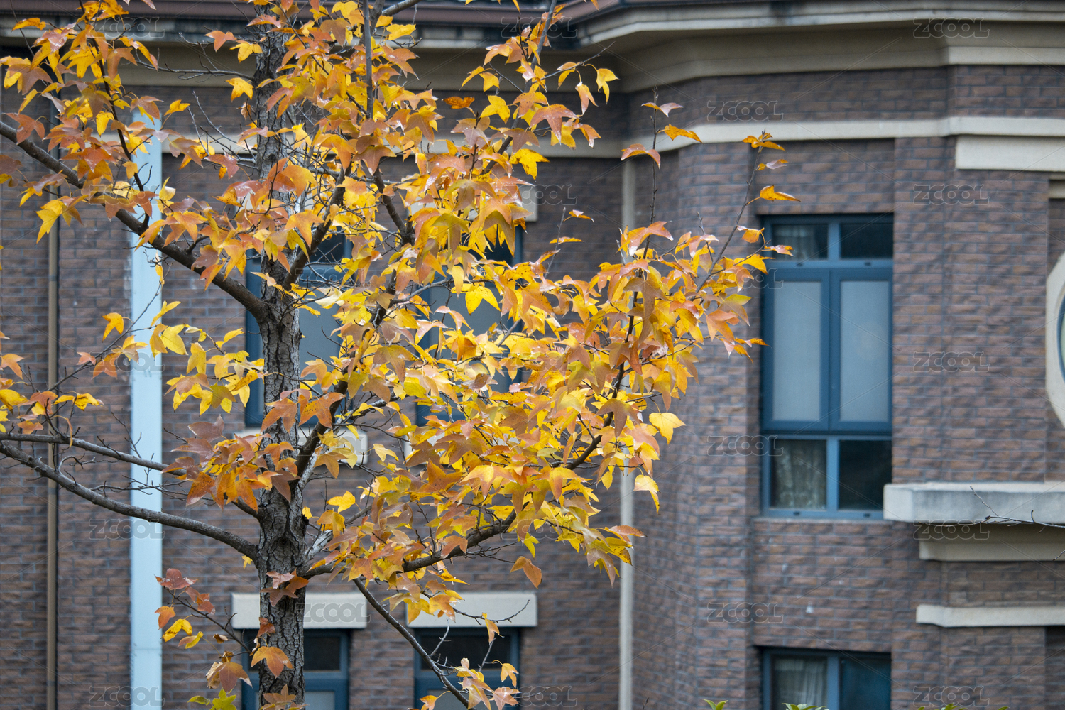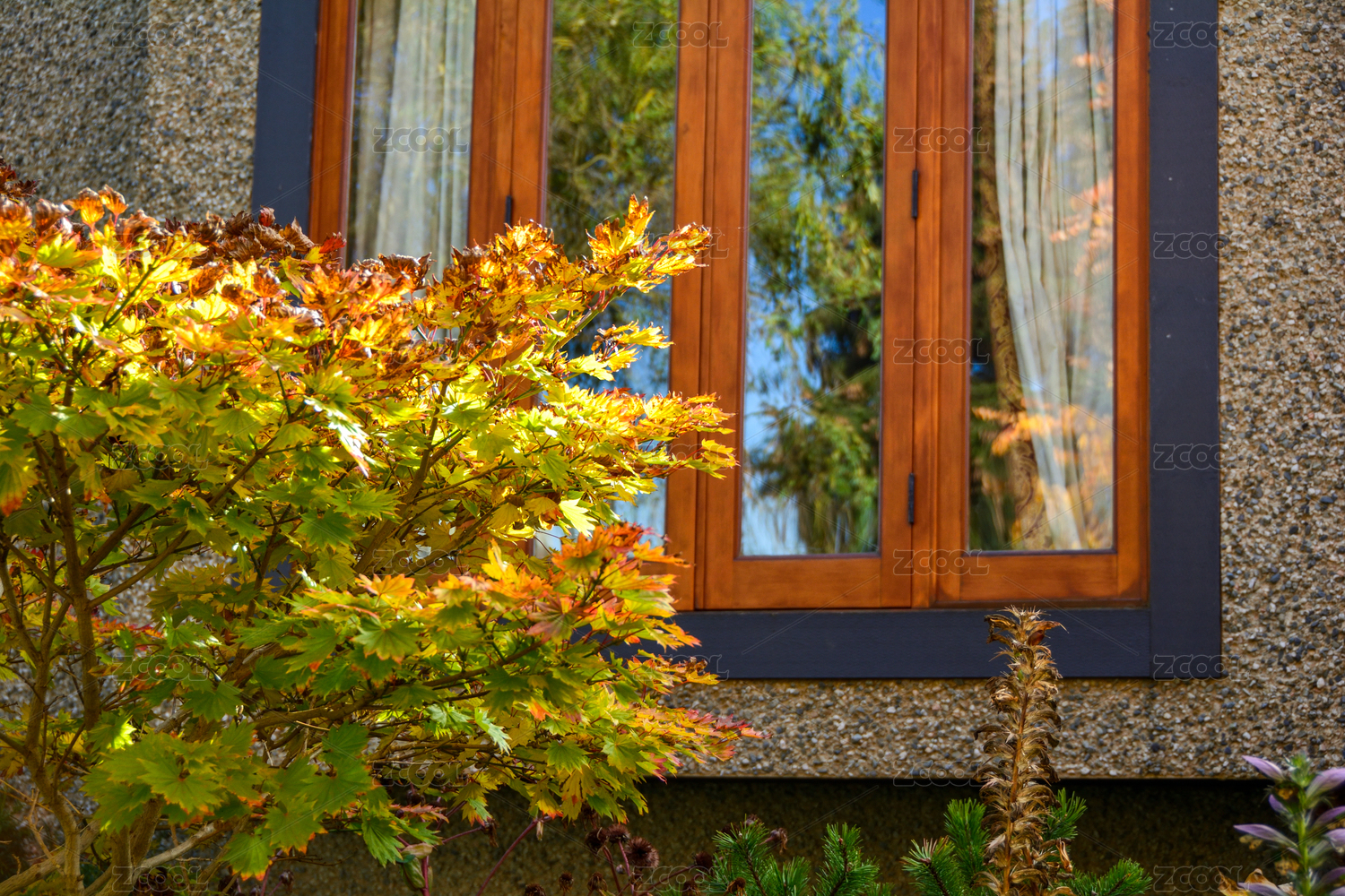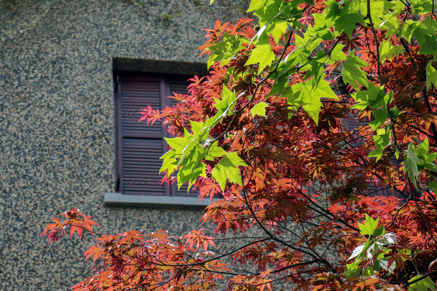 住宅前的深秋三角枫