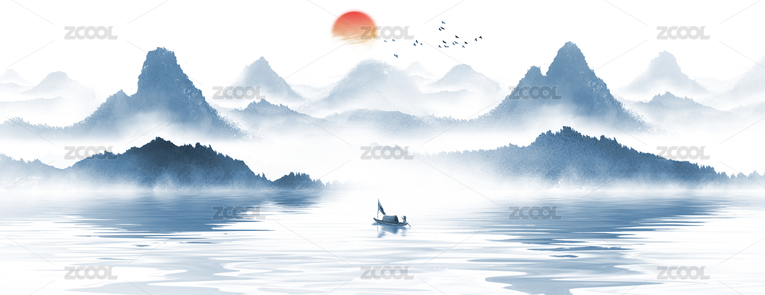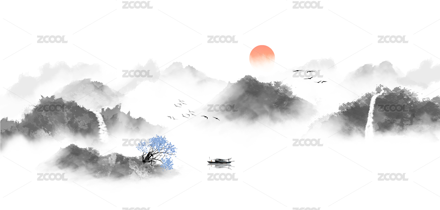中国风,水墨,山水画,新中式,山水,黑白,背景,手绘,装饰画,插画