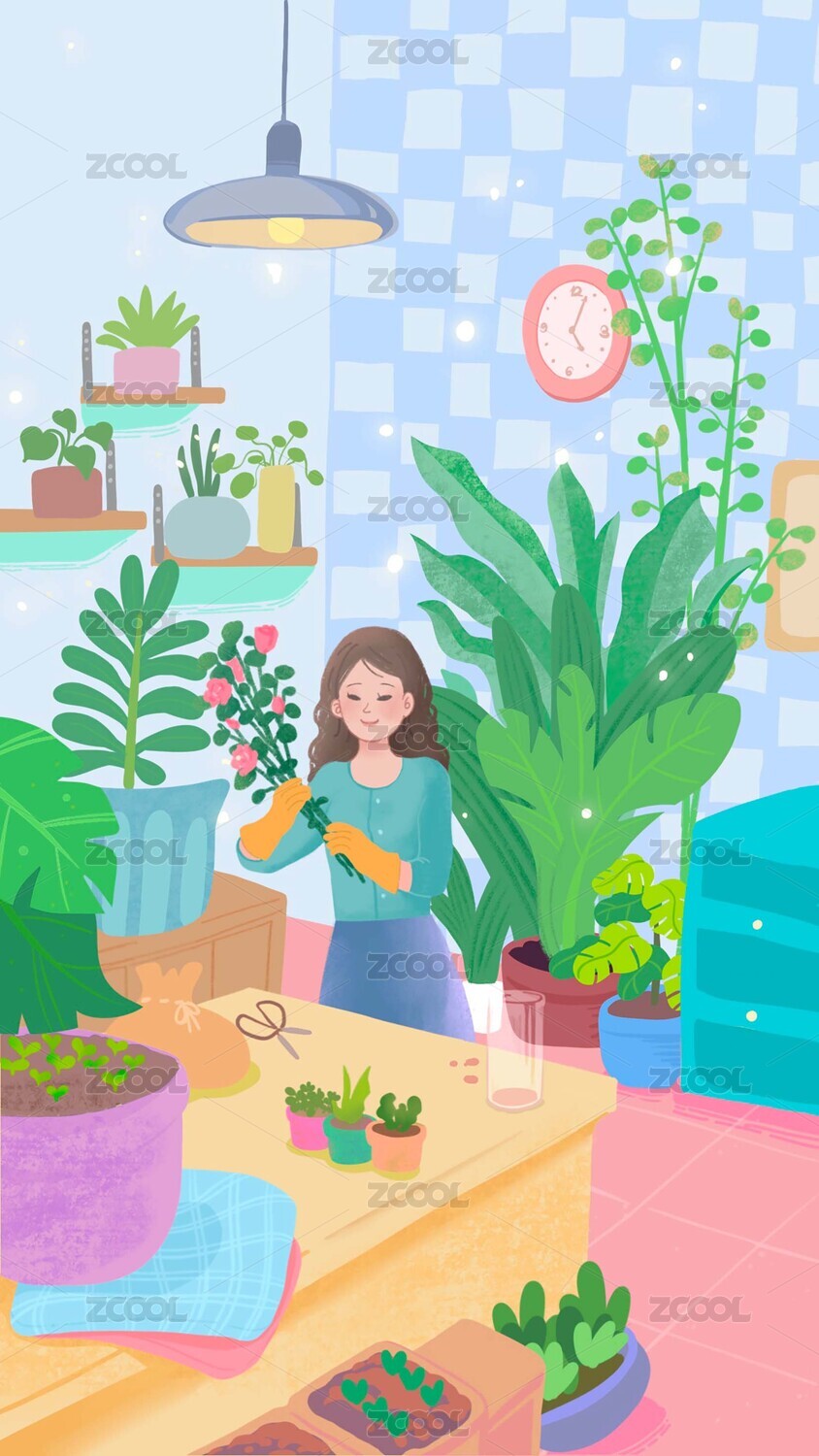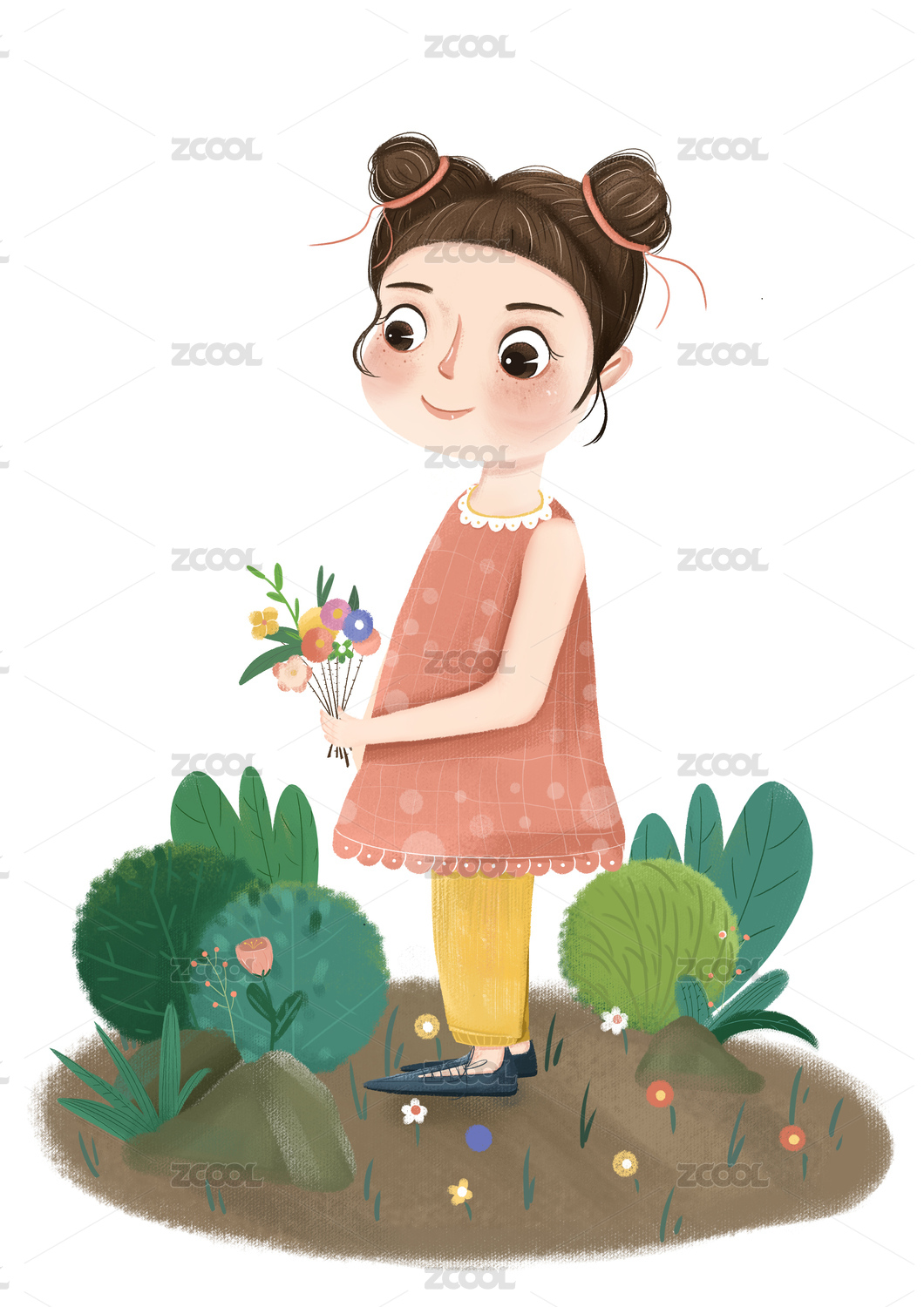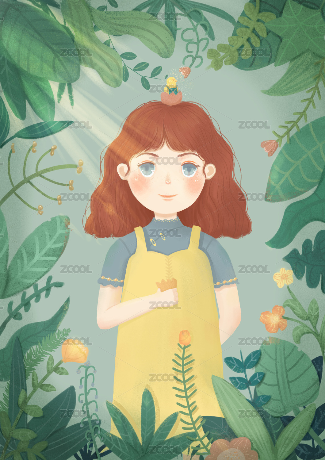爱眼日小女孩玩泡泡户外植物可爱插画