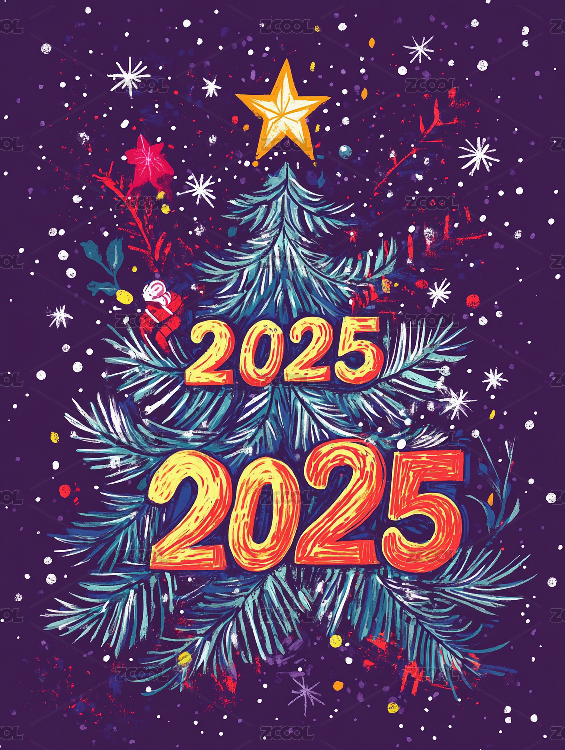 2025圣诞节新年雪人圣诞树明信卡片壁纸