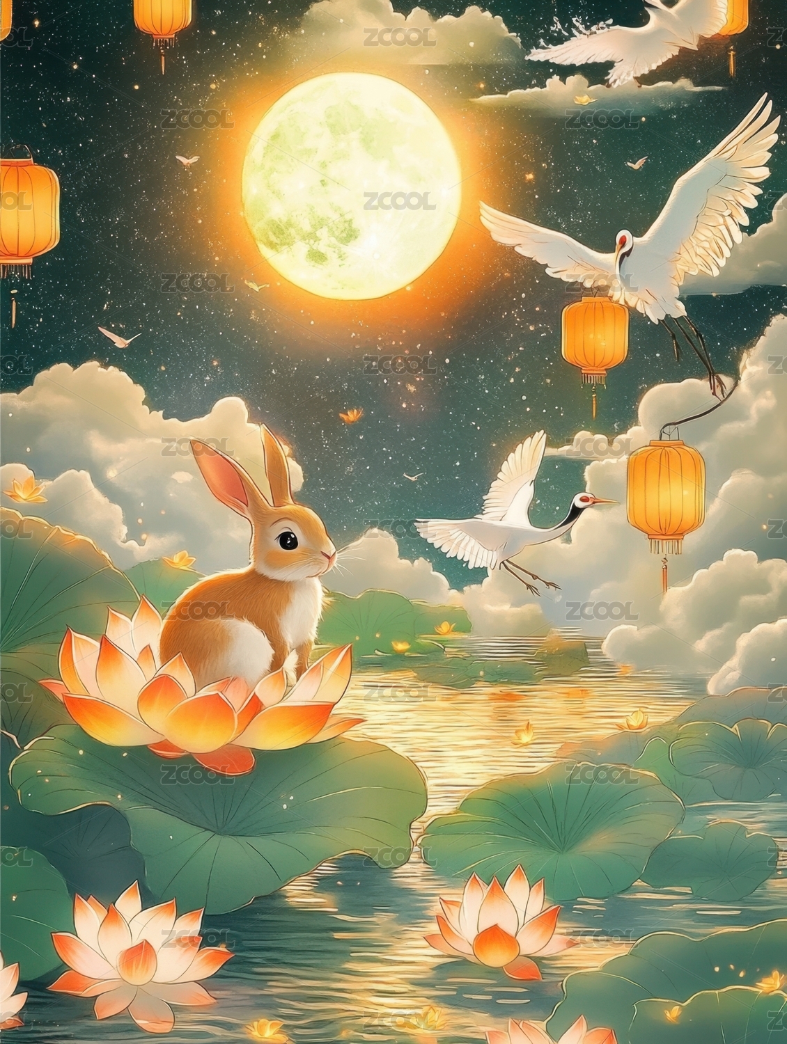 中秋,中秋节,赏月,嫦娥,玉兔,圆月,月亮,团圆,创造力,中国风