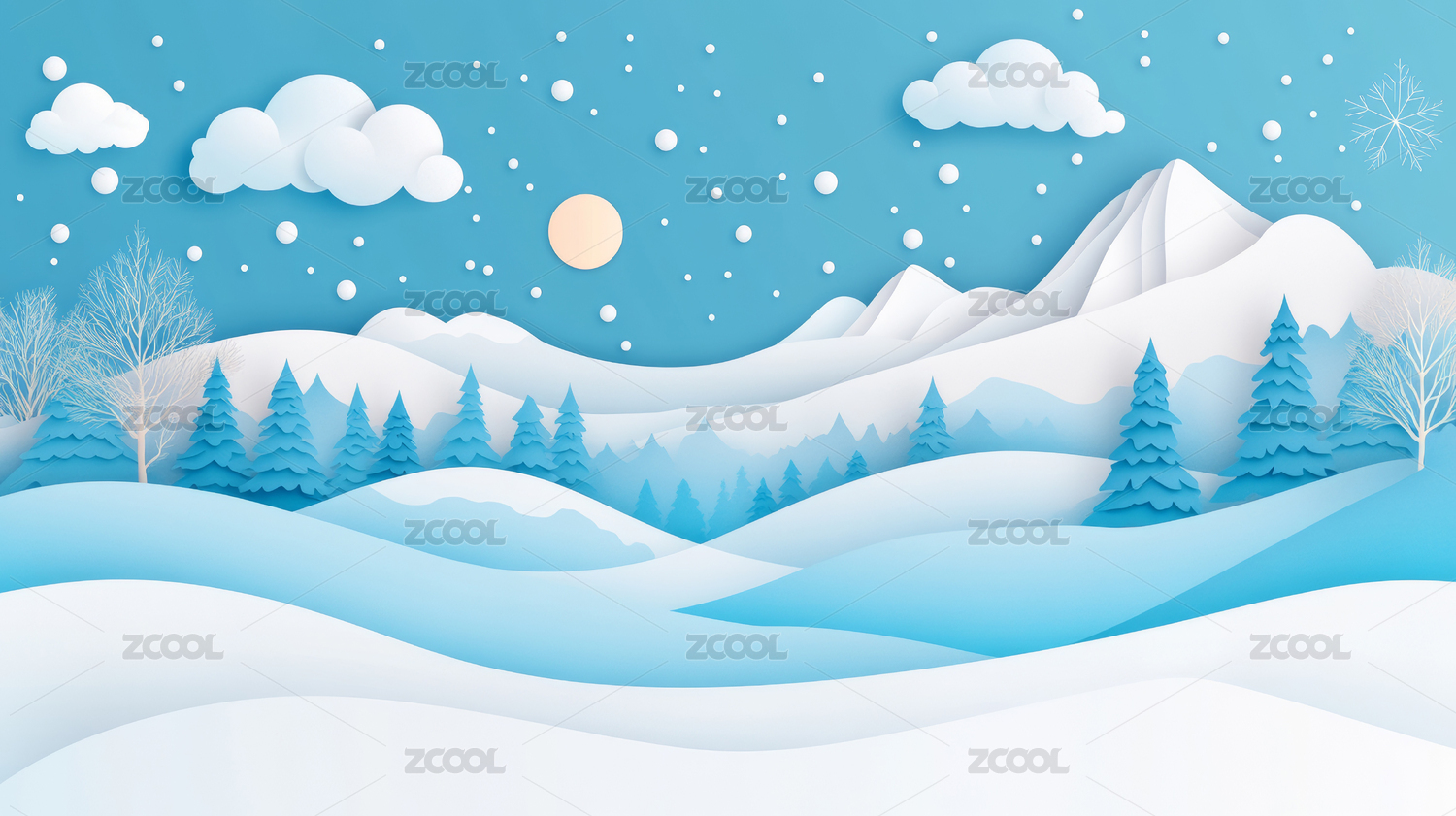 立冬节气冬天森林大雪户外旅行节日场景插画
