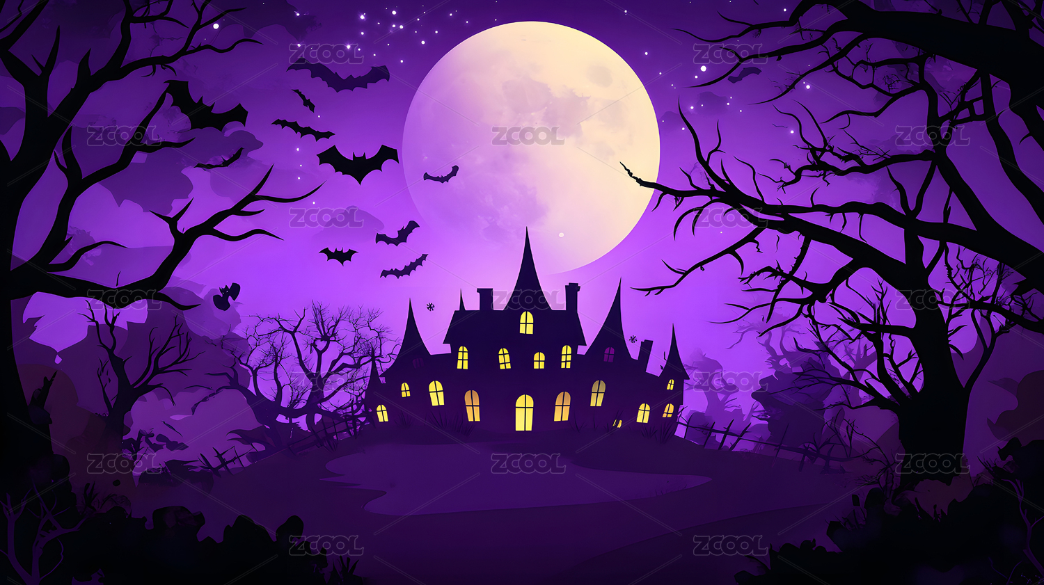 万圣节,鬼节,女巫,扫把,城堡,坟墓,墓地,蝙蝠,蜘蛛,黑夜