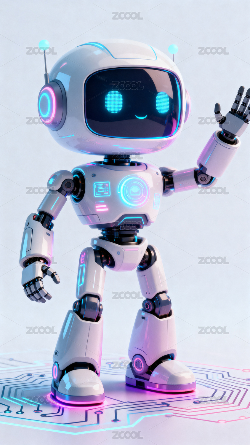 可爱机器人挥手科技感
