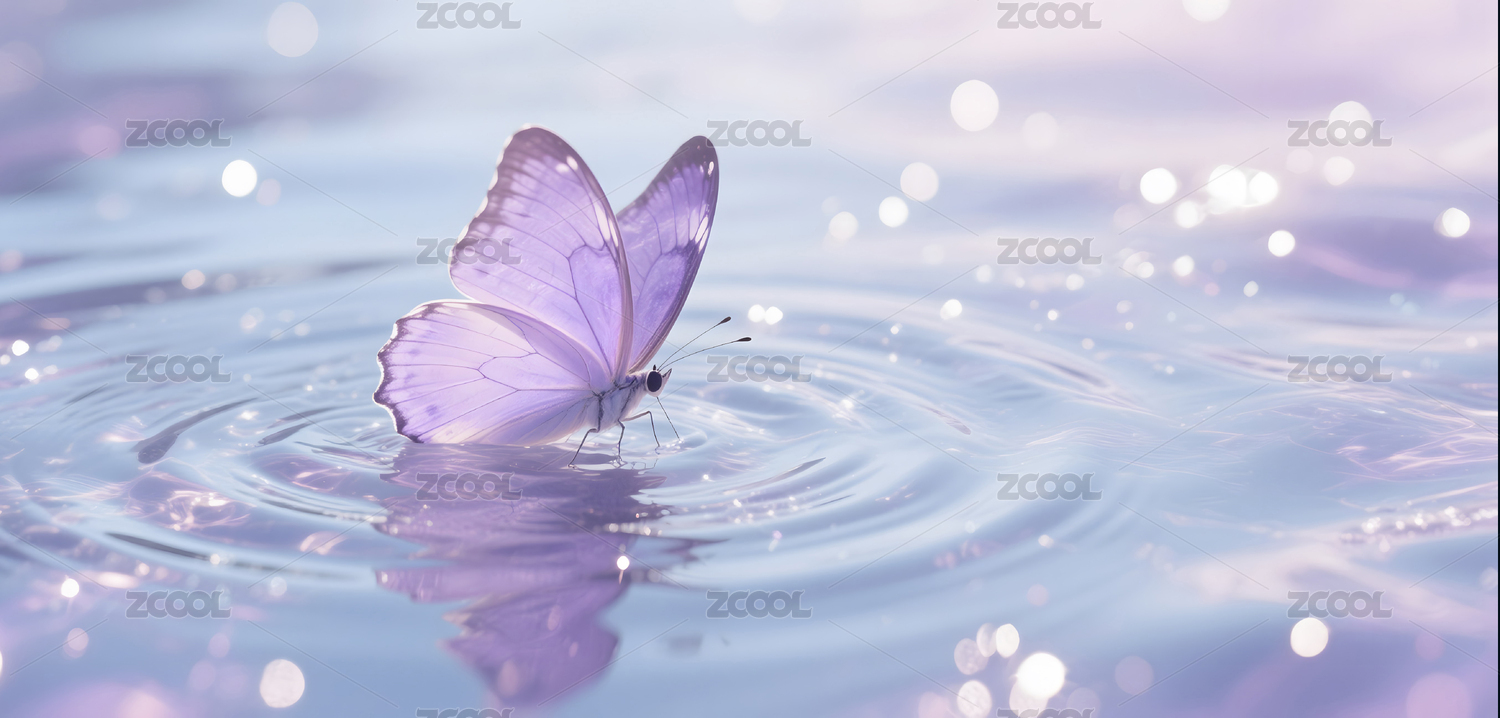 数码海中紫色蝴蝶场景抽象图形海报网页背景