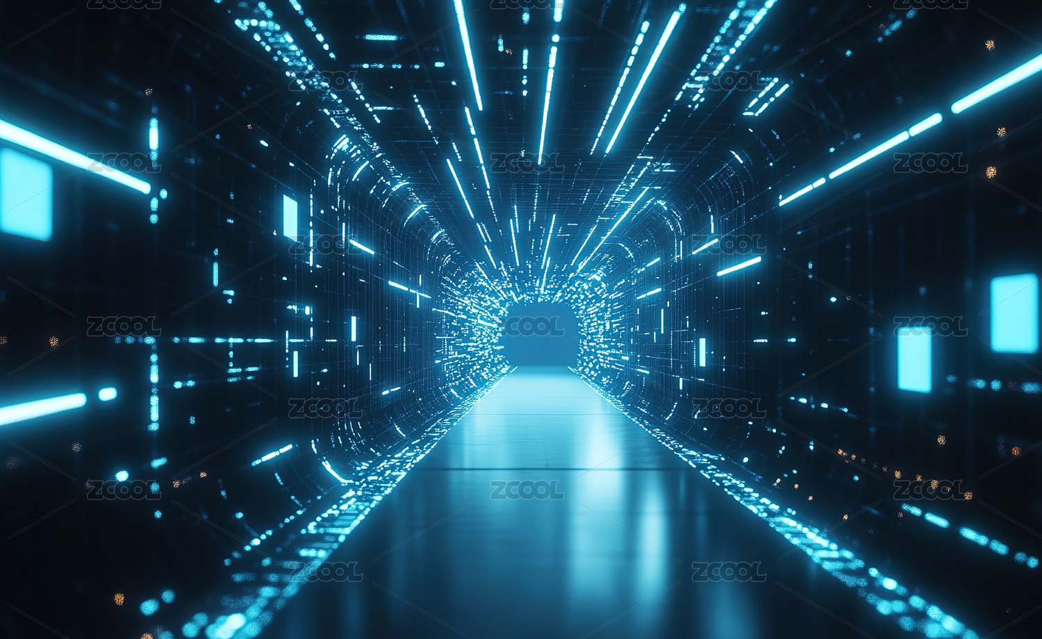 蓝色霓虹走廊尽头芯片