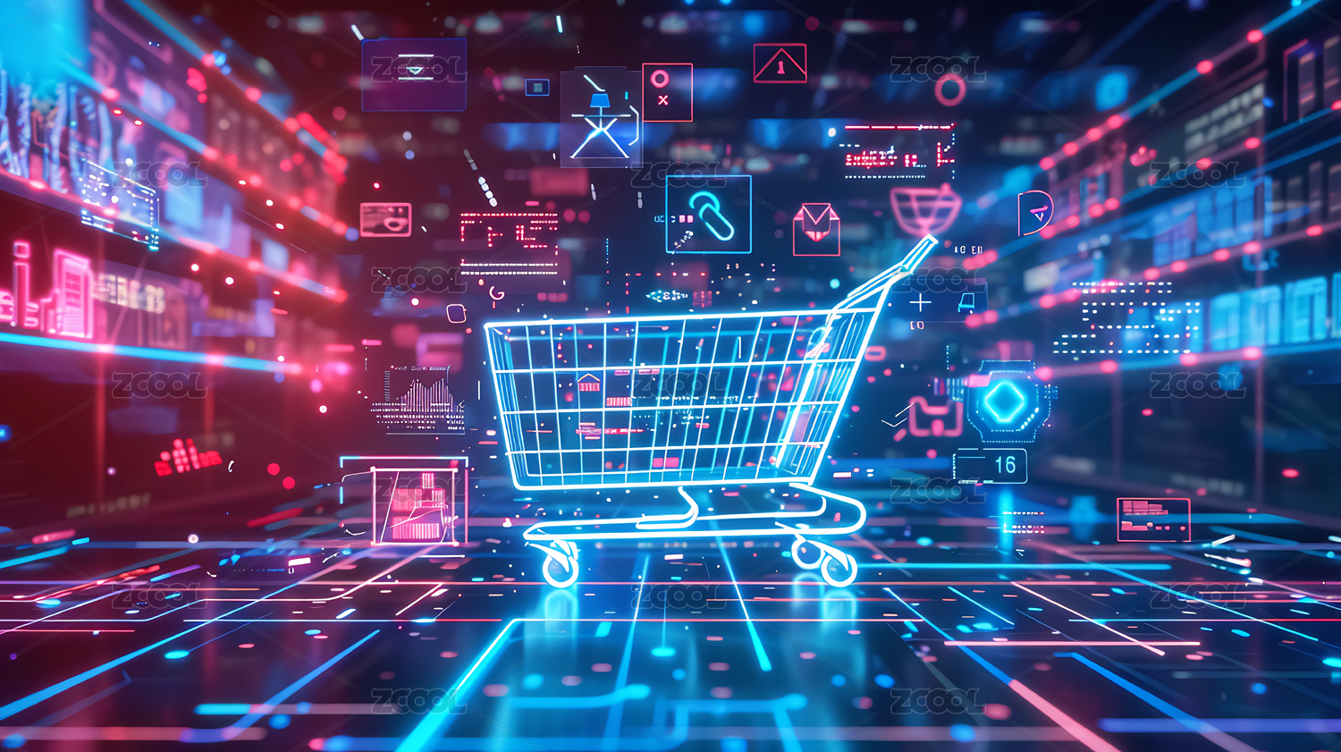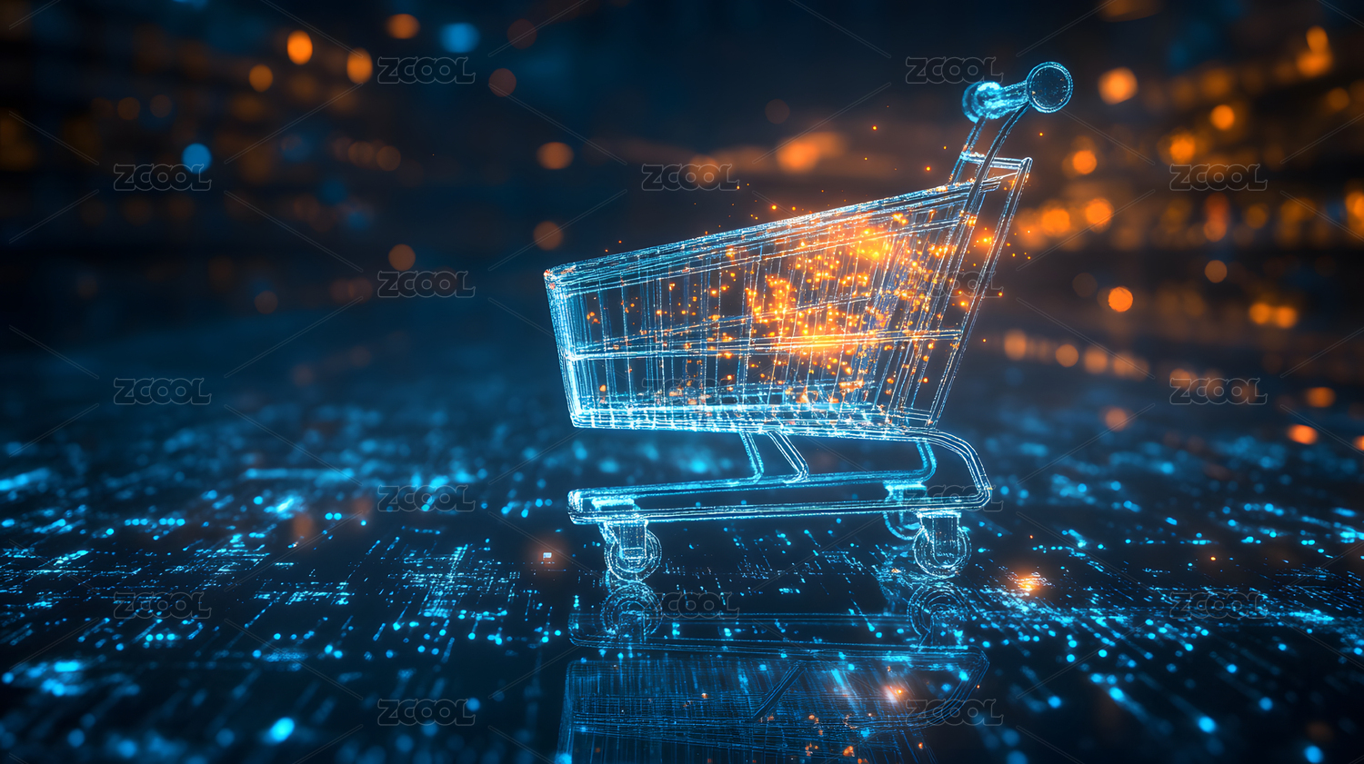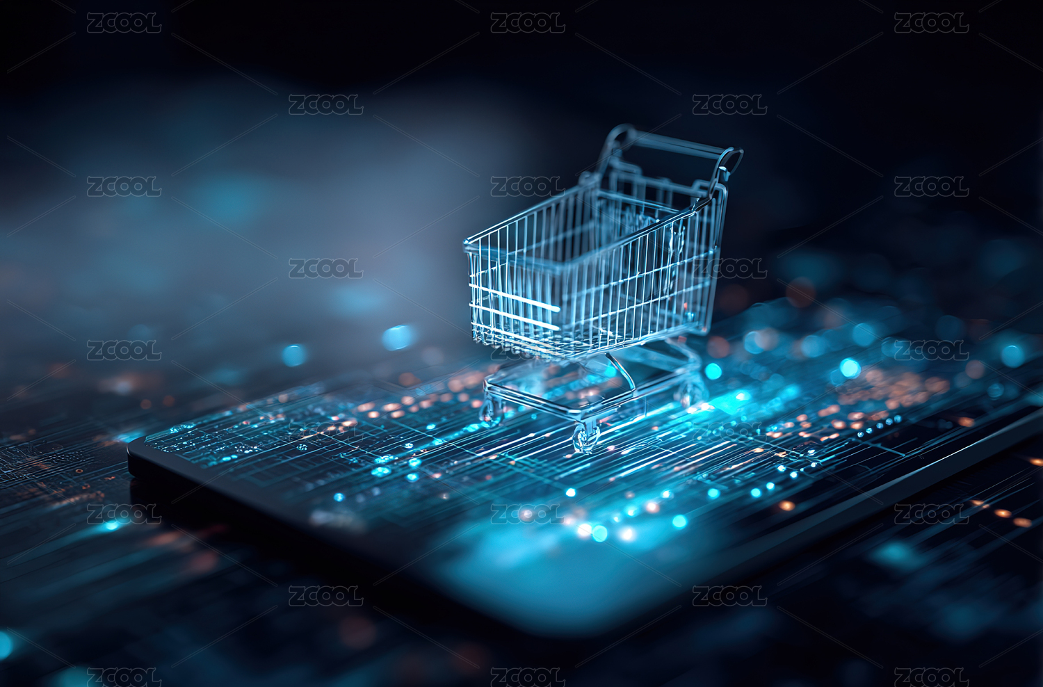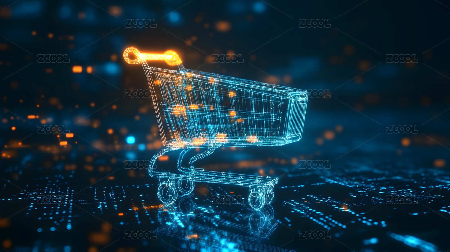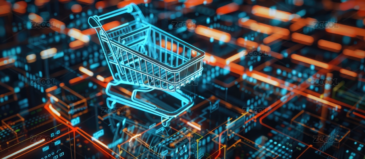 科技背景下数字线框购物车,电子商务概念