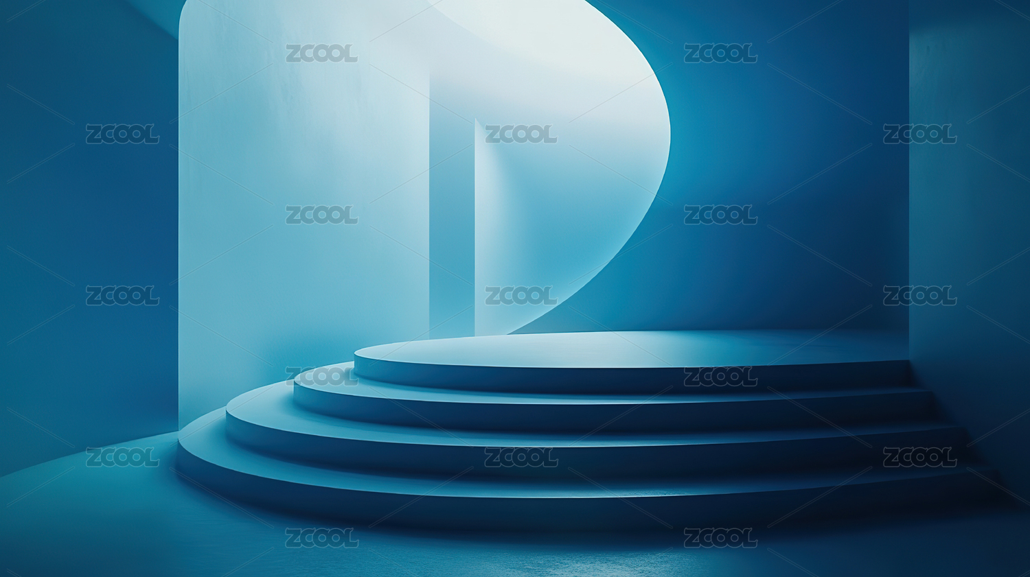 三维渲染的淡蓝色圆形楼梯背景