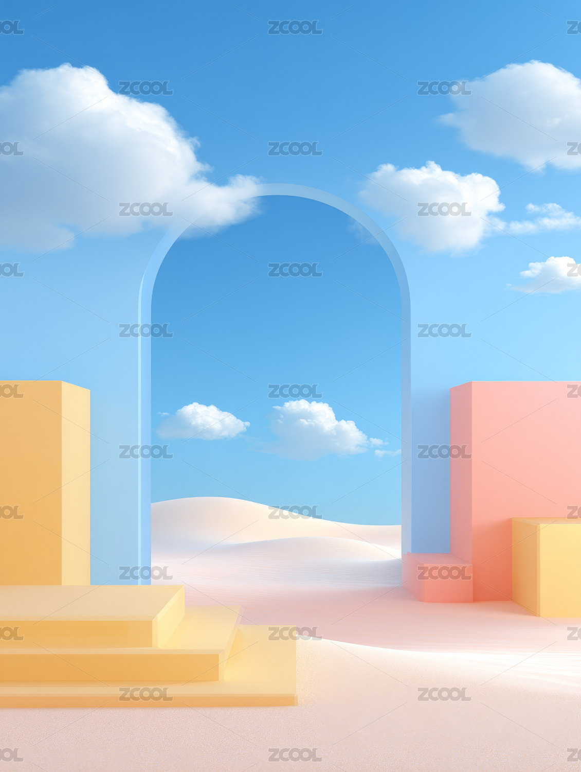 粉色,卡通,户外,单个,圆形,3D,展台,电商,直播,背景