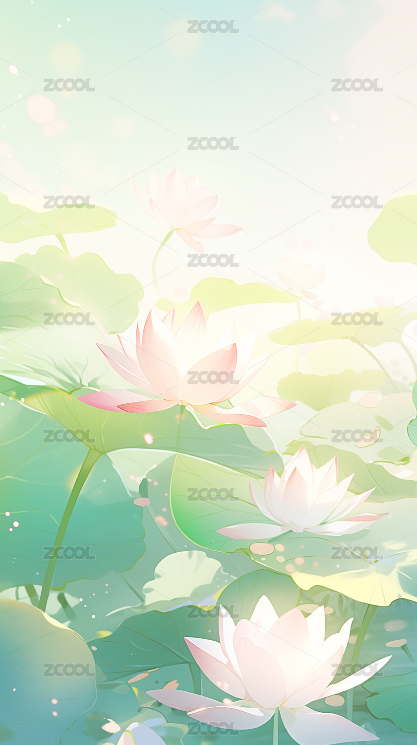夏天,池塘,荷花,莲蓬,荷叶,植物,插画,手绘