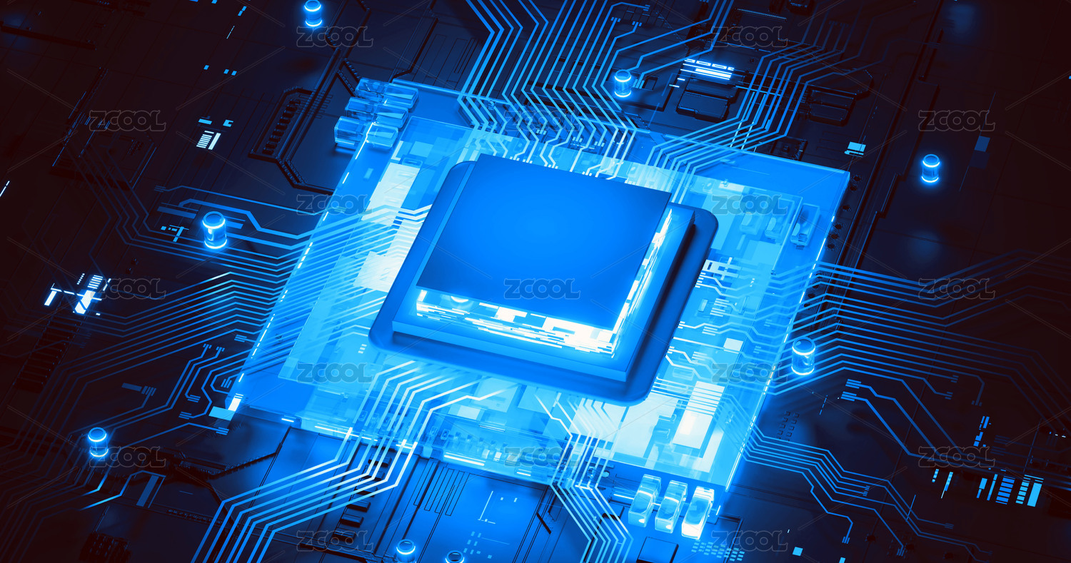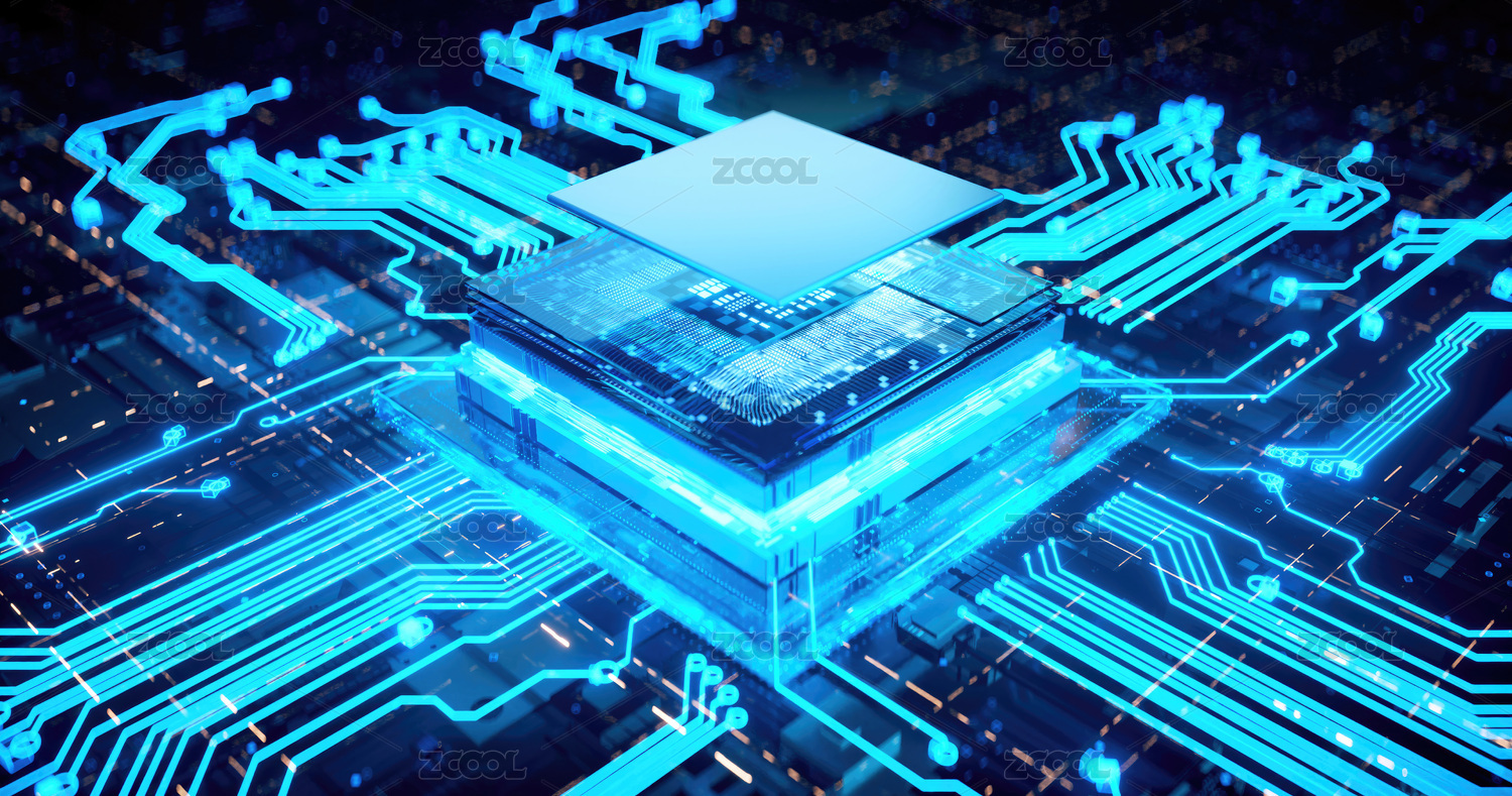 芯片金融科技赛博朋克人工智能三维渲染电路