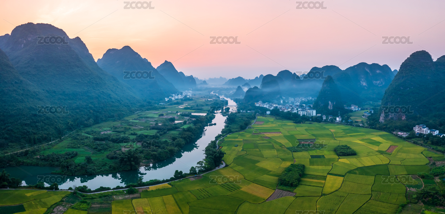 桂林山水,田心村,状元桥,农田,稻田,麦田,日出,朝霞,山,水