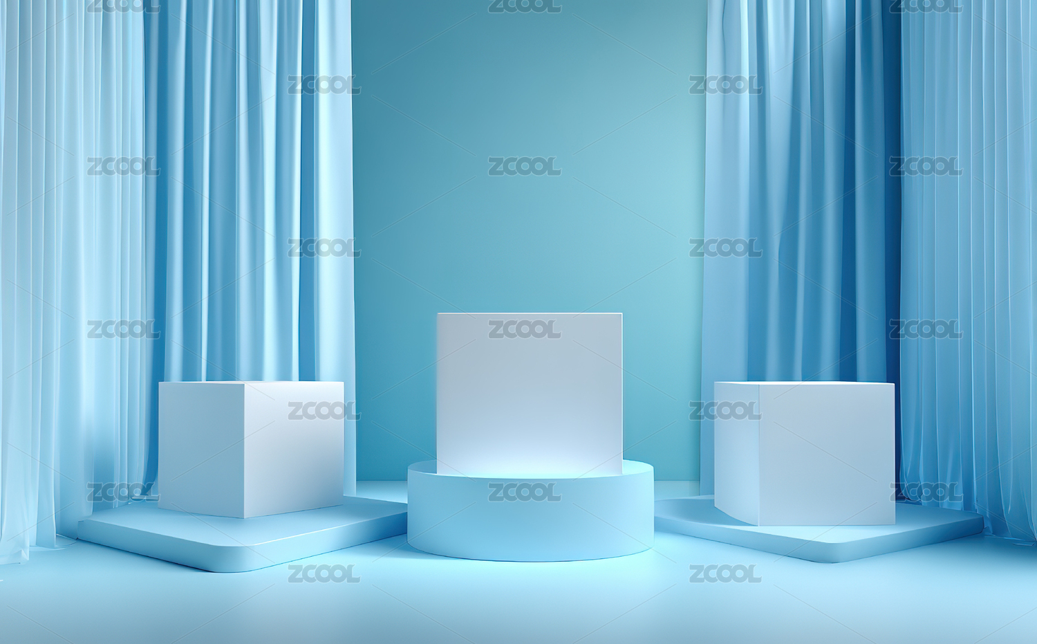 蓝色幕布前的白色展台