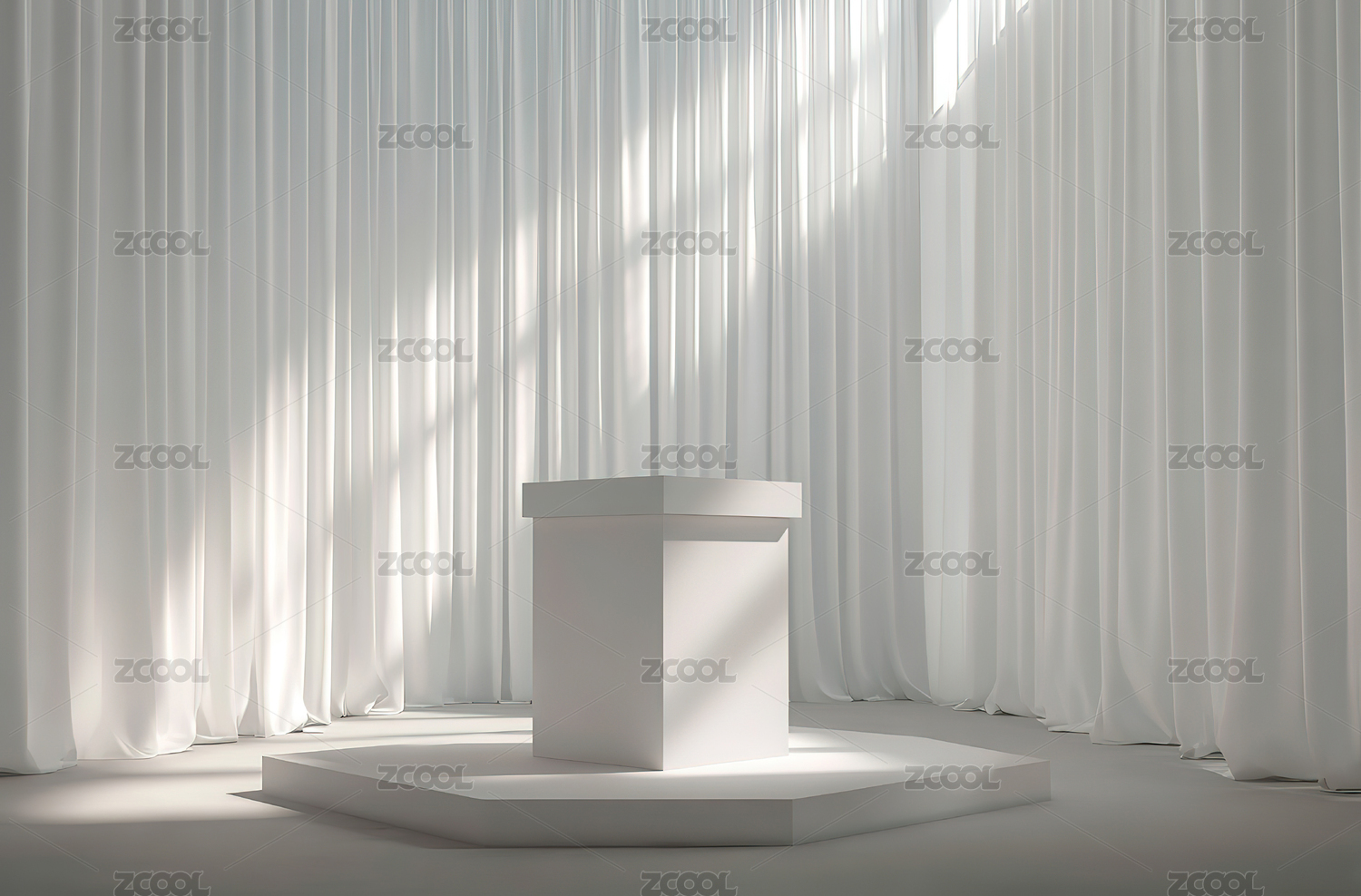 白色立方体置于帘幕空间