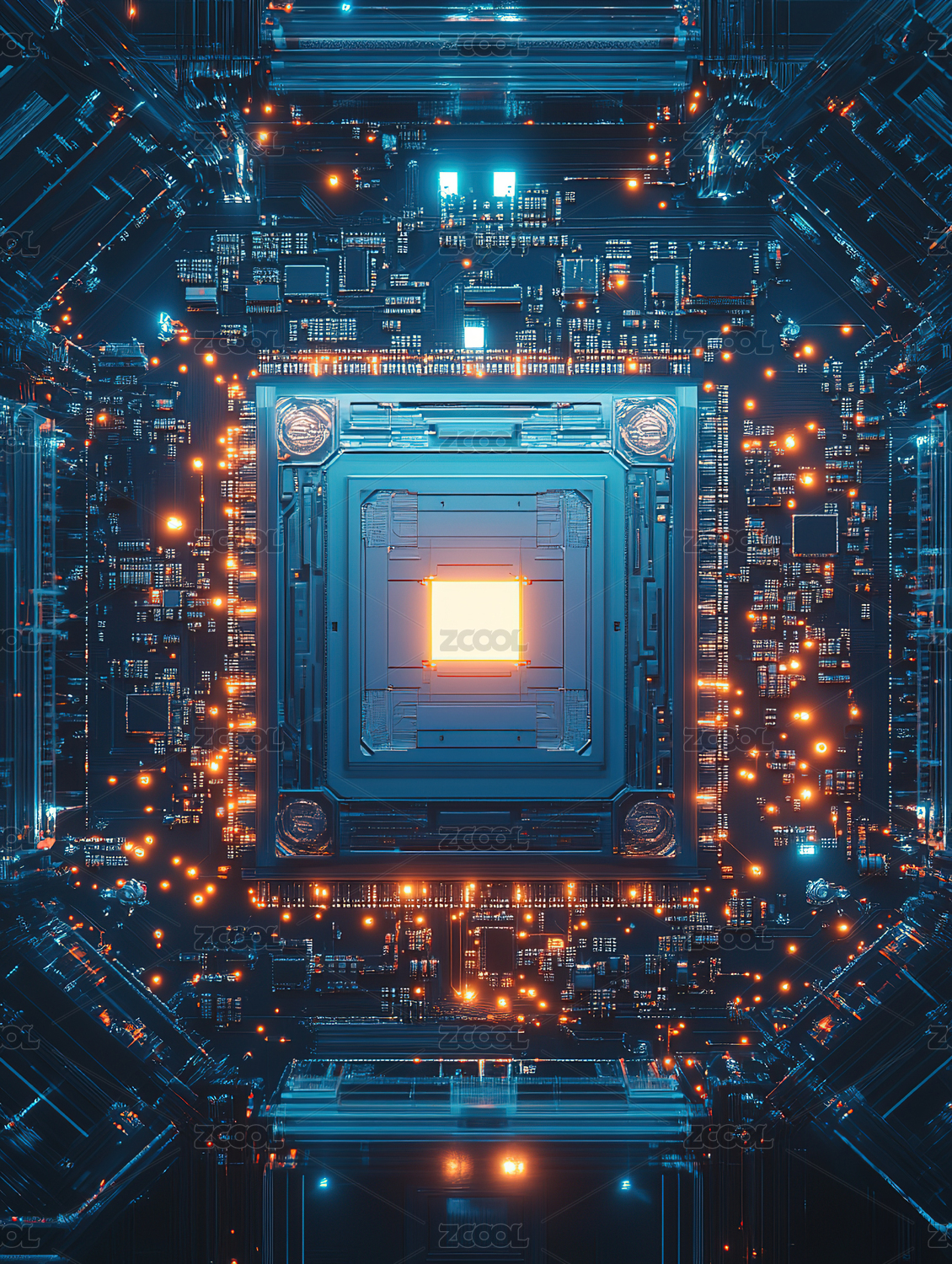 计算机CPU中央处理器概念背景图