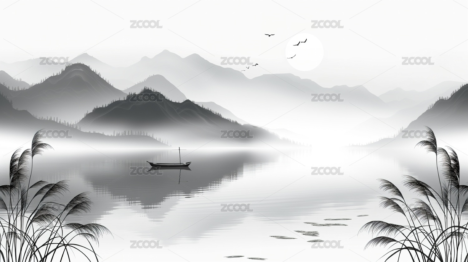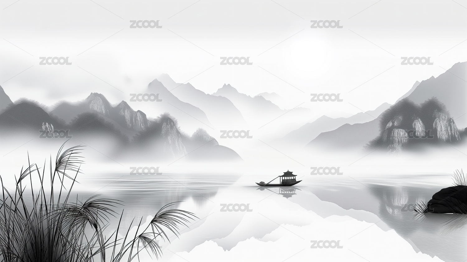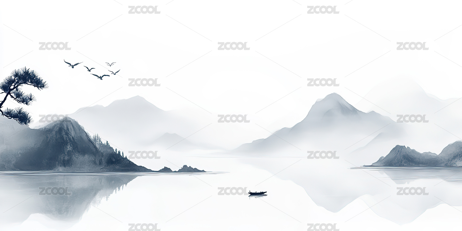山清水秀的中国传统山水配以雾霭,诗情画意