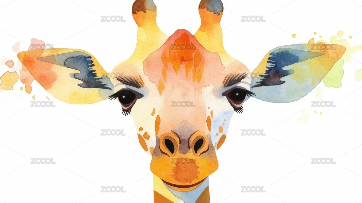 水彩长颈鹿写意