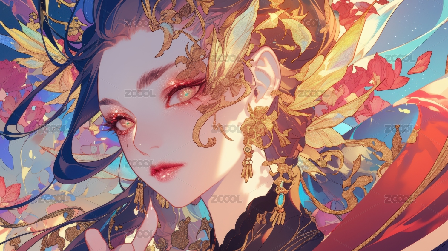 手绘卡通动漫唯美可爱的中国古风古装女孩插