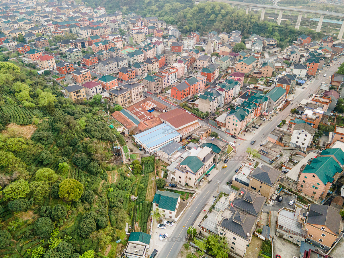 航拍,多彩,色彩,颜色,建筑,别墅,居住,杭州,中国,田园