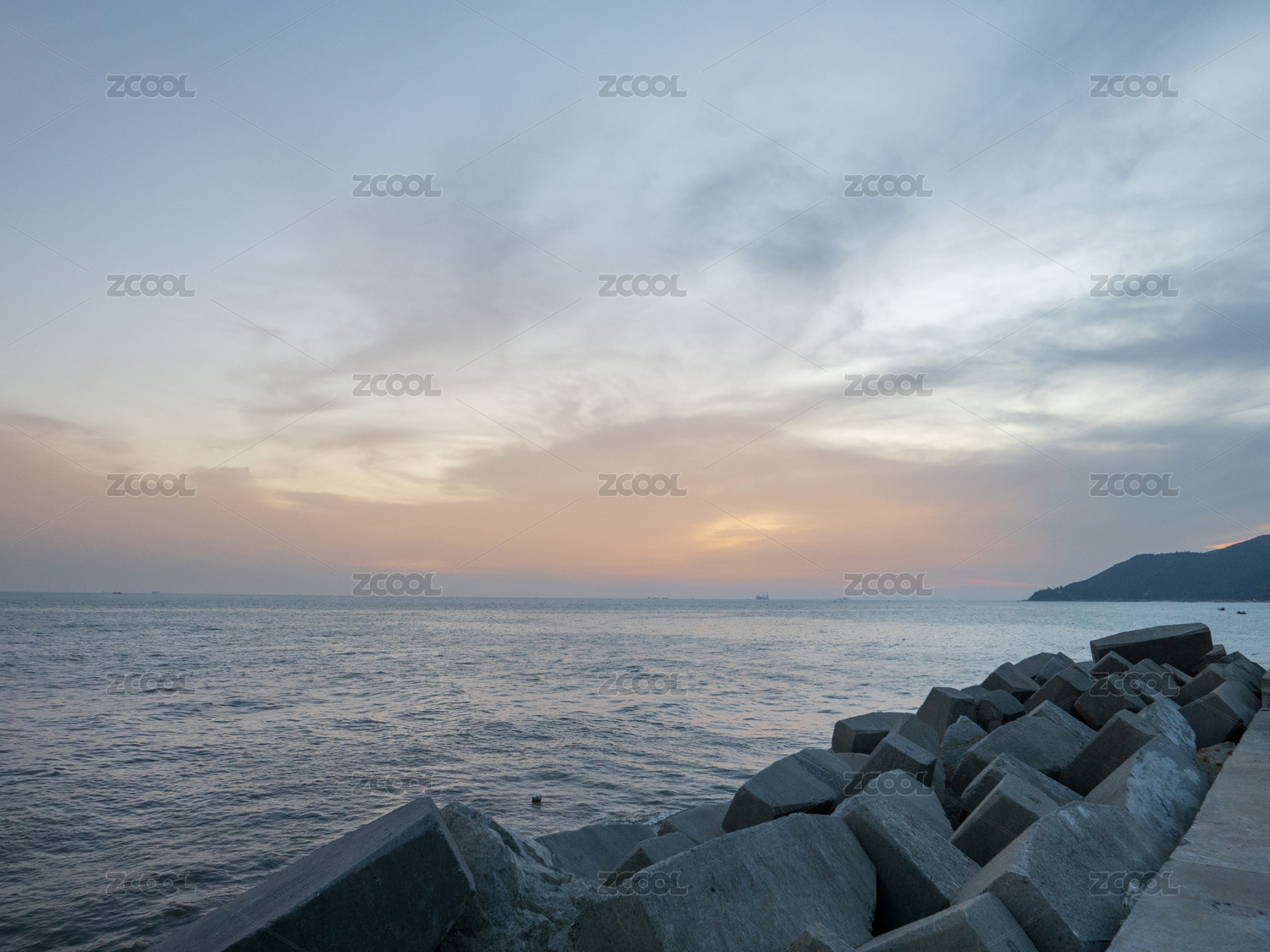 山东,威海,防海堤,大堤,工字石,海湾,海岸,蔚蓝,蓝色,晴天
