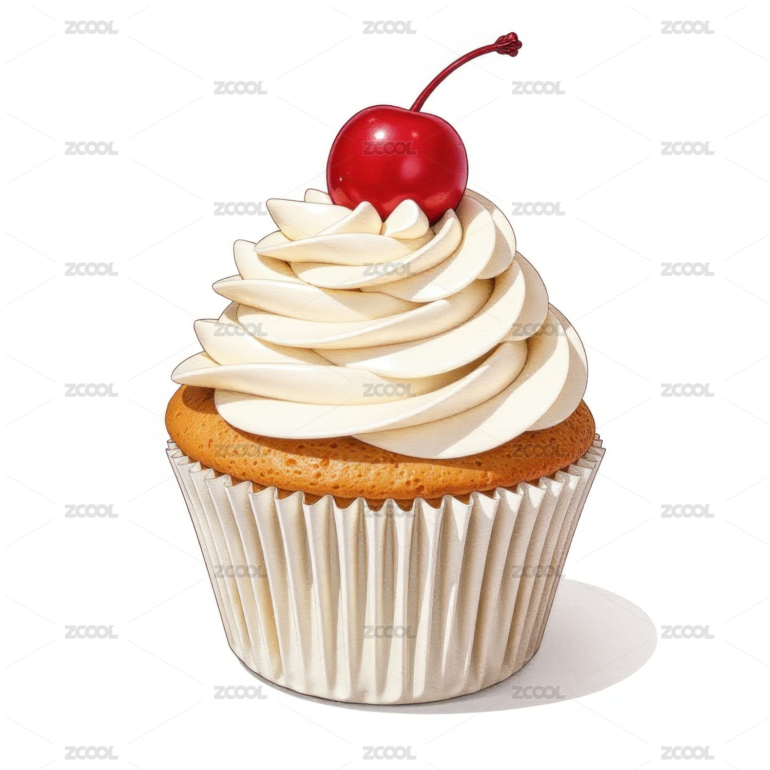 樱桃巧克力杯子蛋糕甜品美食插画元素