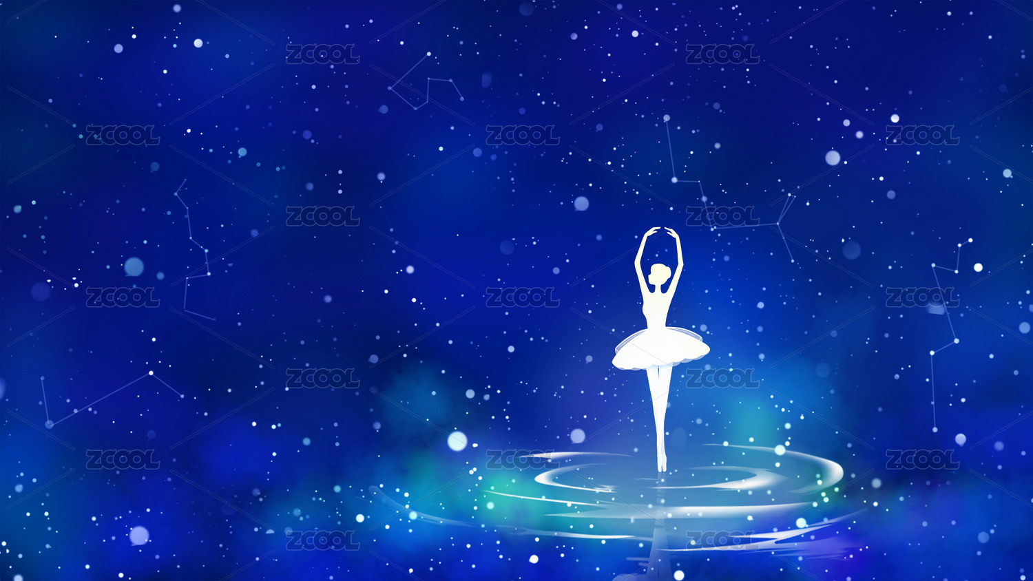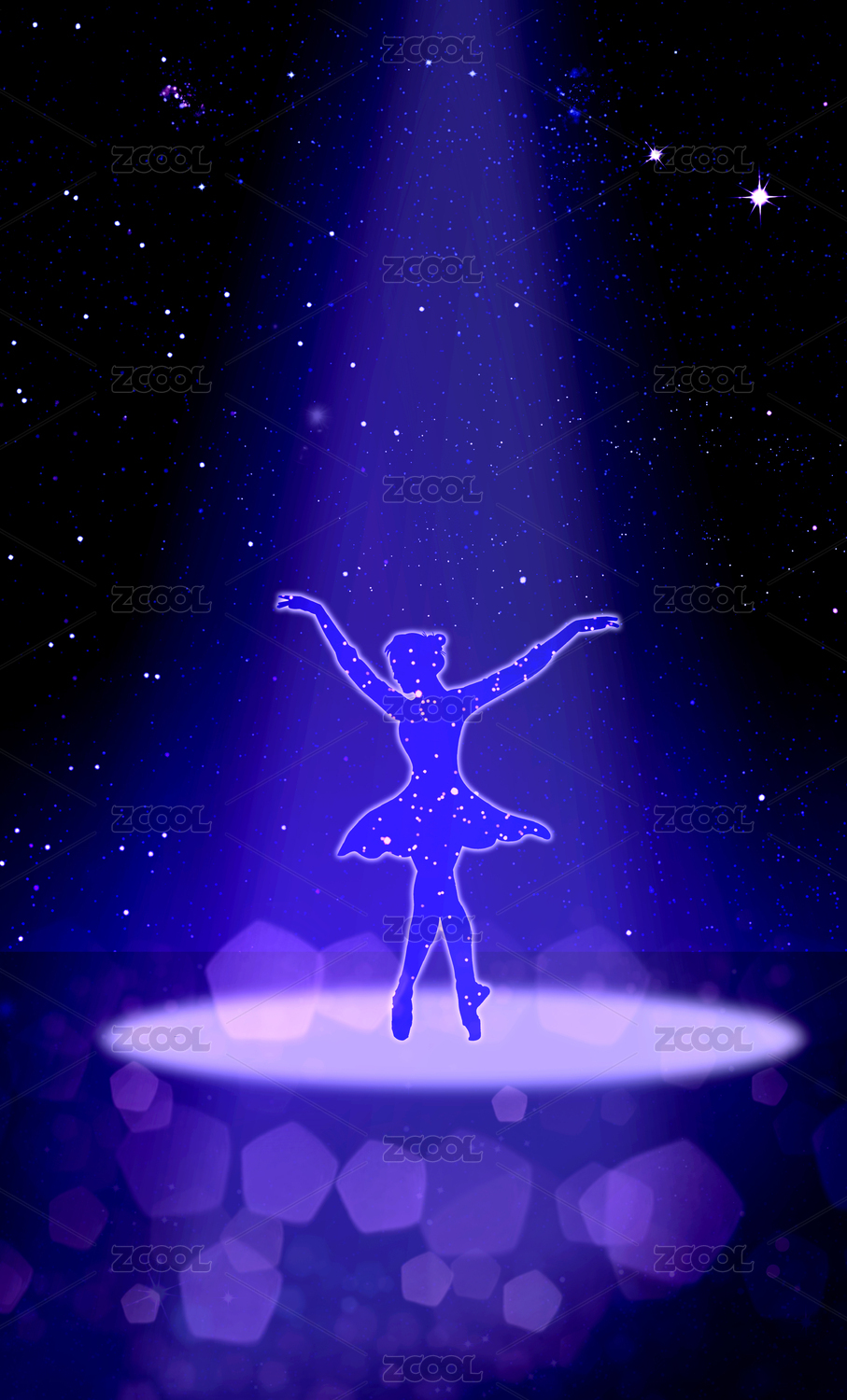 一位美丽少女在舞台上跳芭蕾舞蹈,舞台灯光射灯打在她身上插画背景