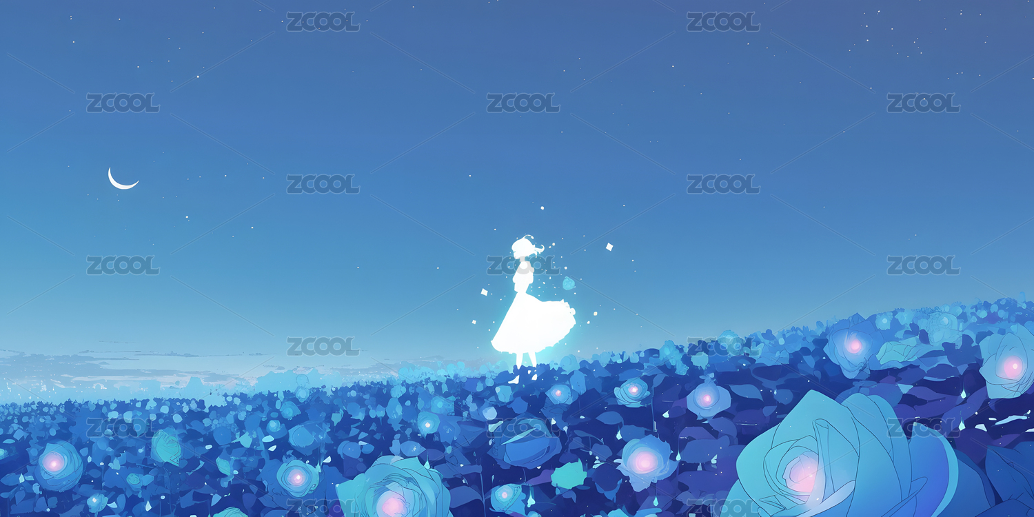 纯白少女放飞手中的星星,深蓝色治愈星空