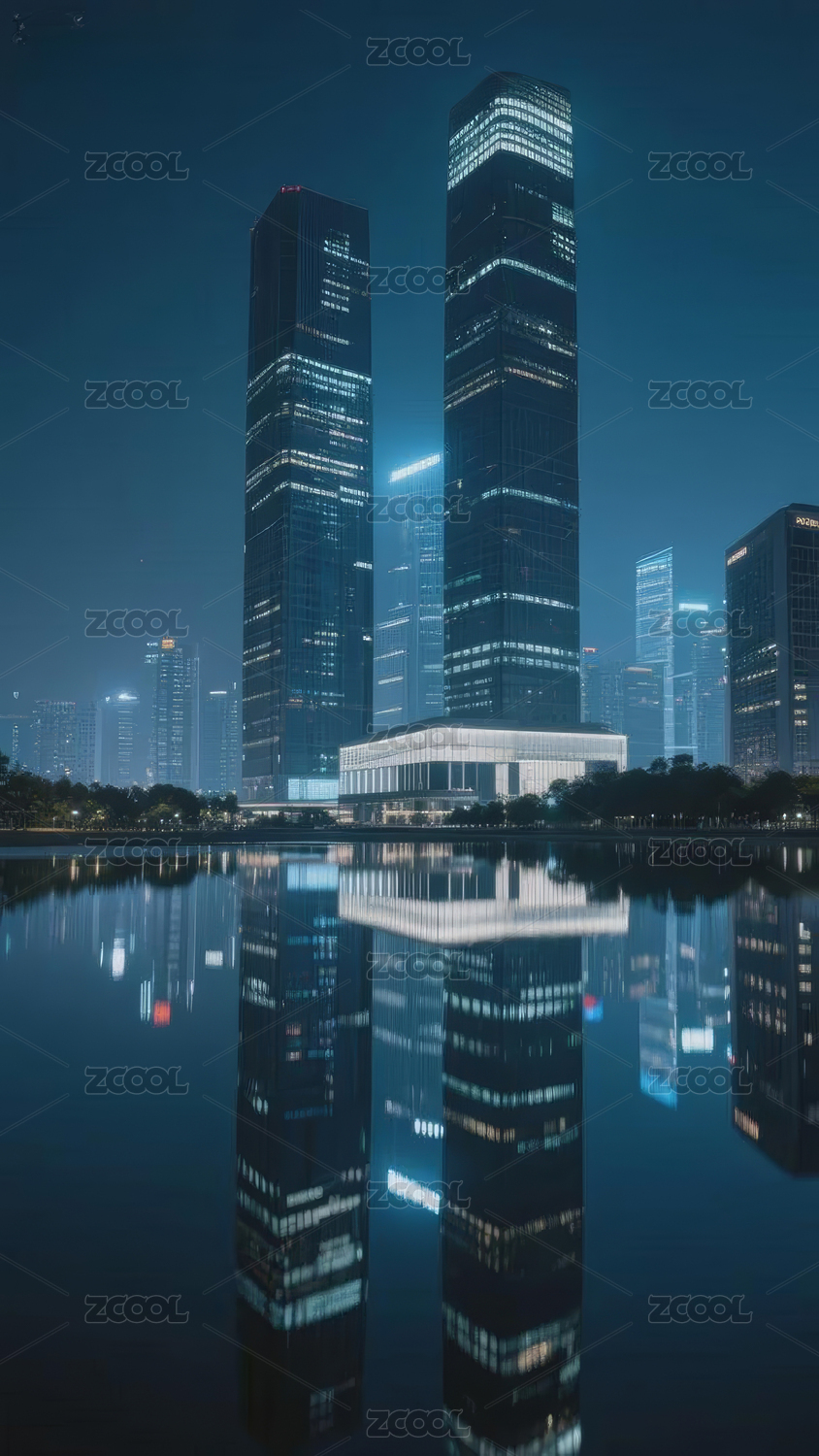 城市夜景倒影