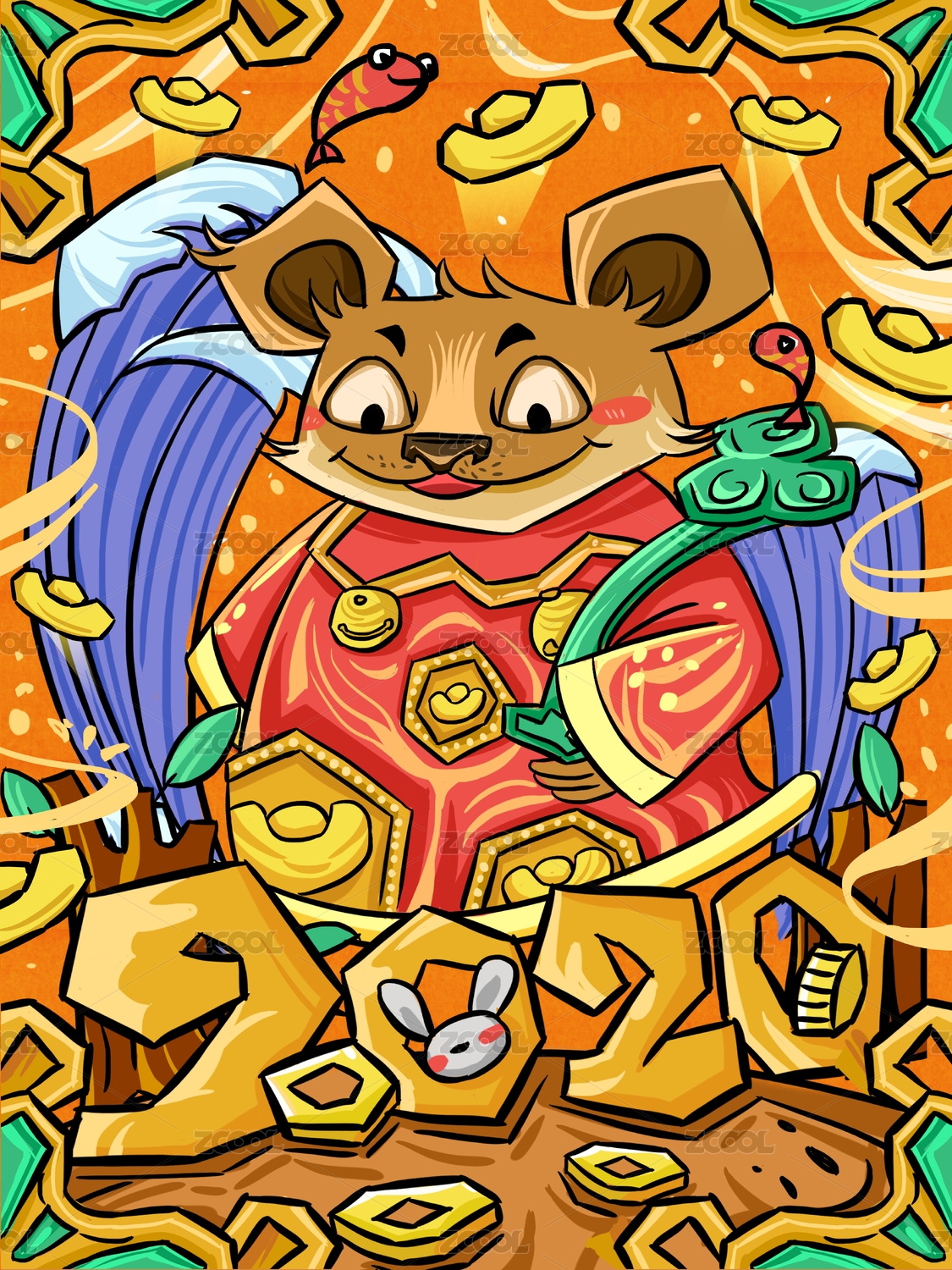 国潮风2020年艺术字鼠年可爱插画
