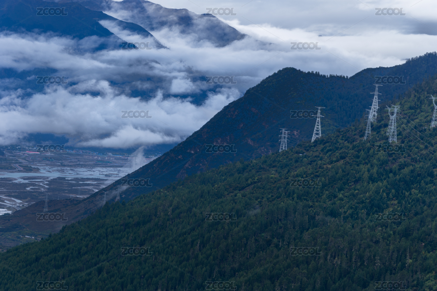 中国四川甘孜道孚夏季雨天龙灯草原高山与电缆